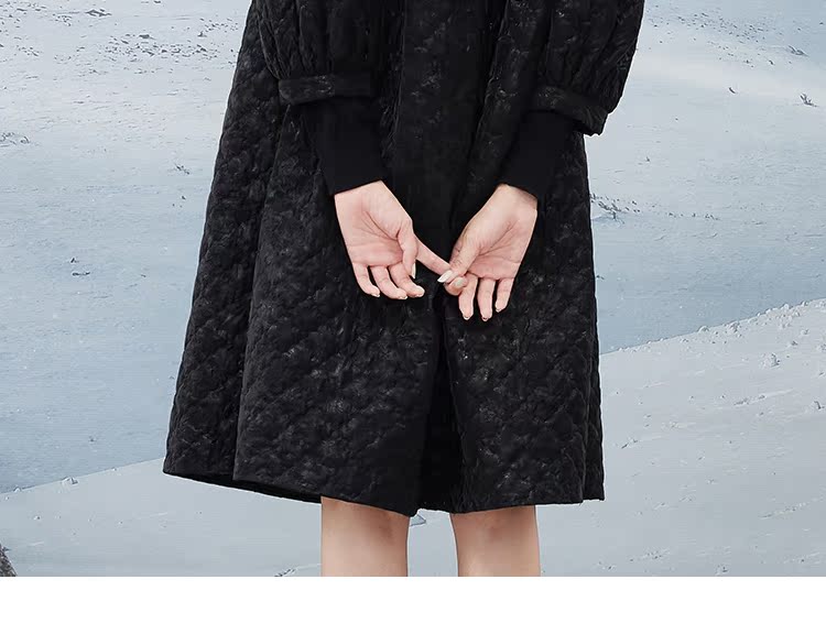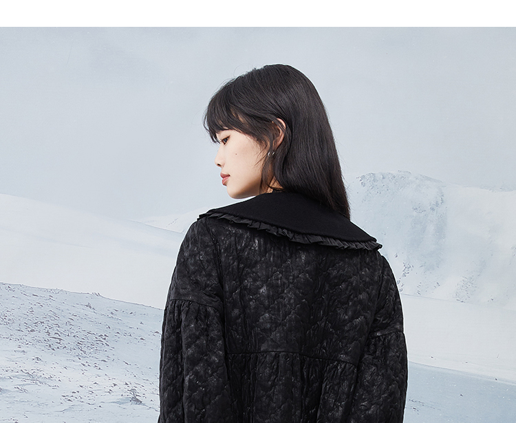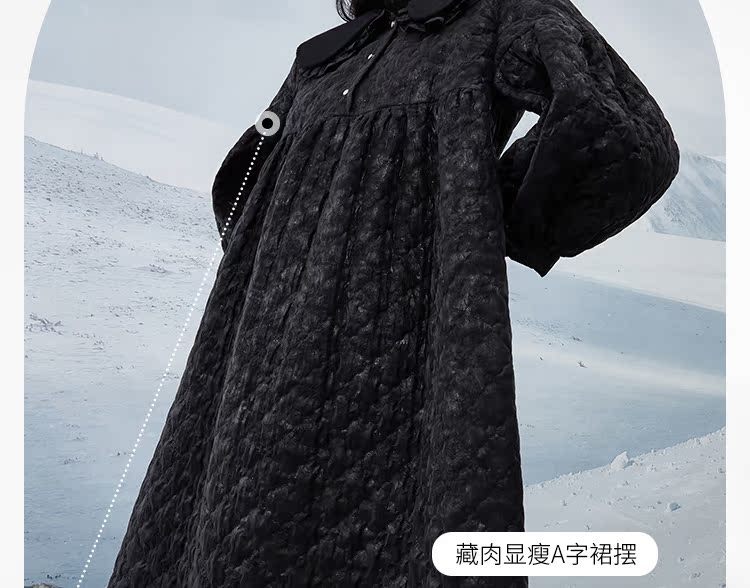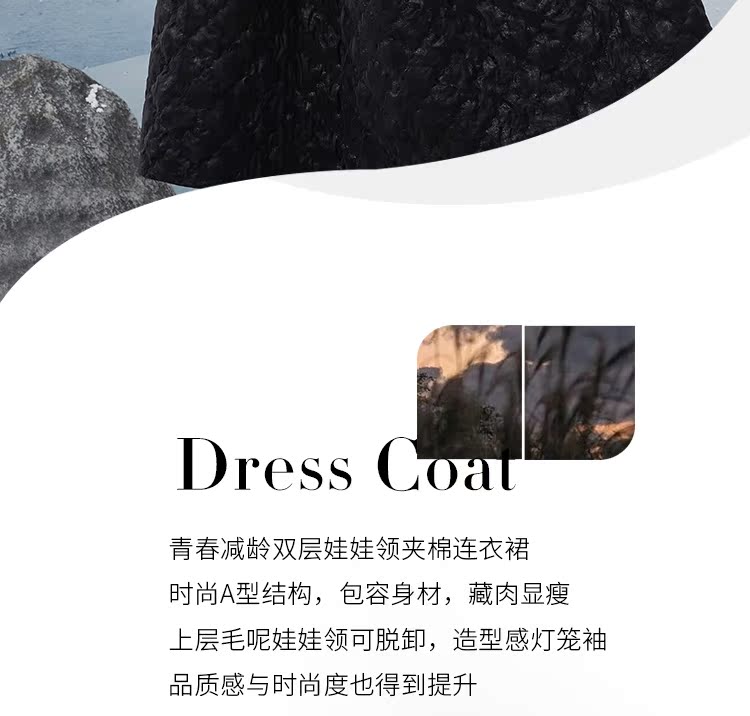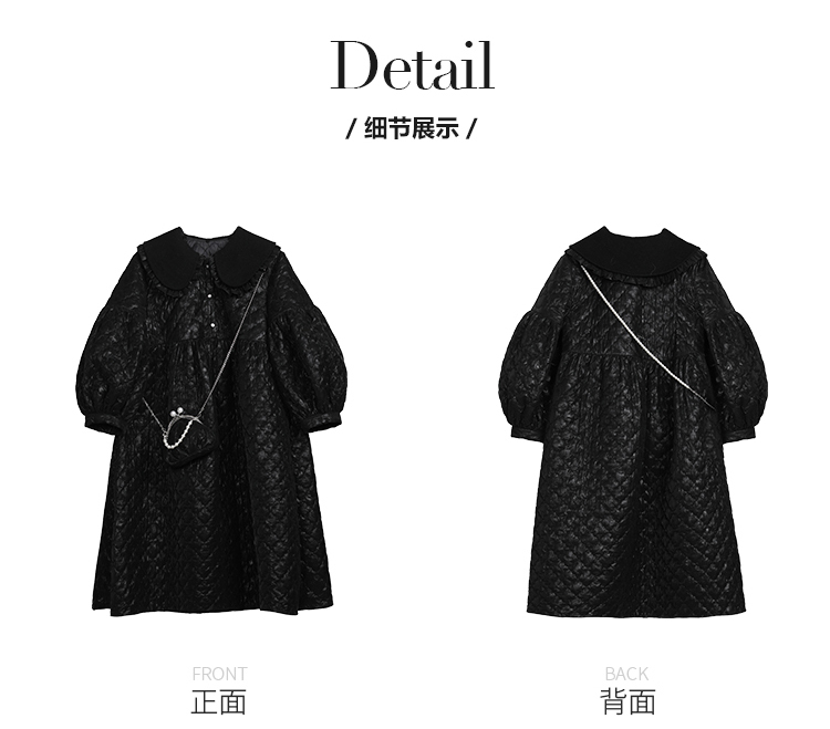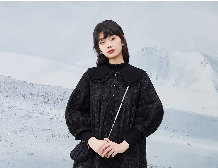 IAmMIX27黑色夾棉連衣裙女冬季減齡燈籠袖時尚雙層娃娃領A字裙女