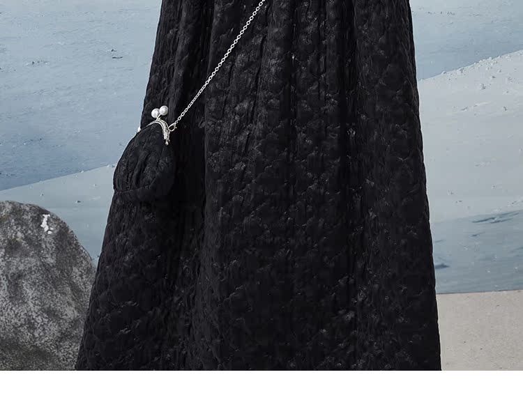戎美 法式萬用小黑裙【真絲絲絨系列】圓領宴會仙女 長裙連衣裙