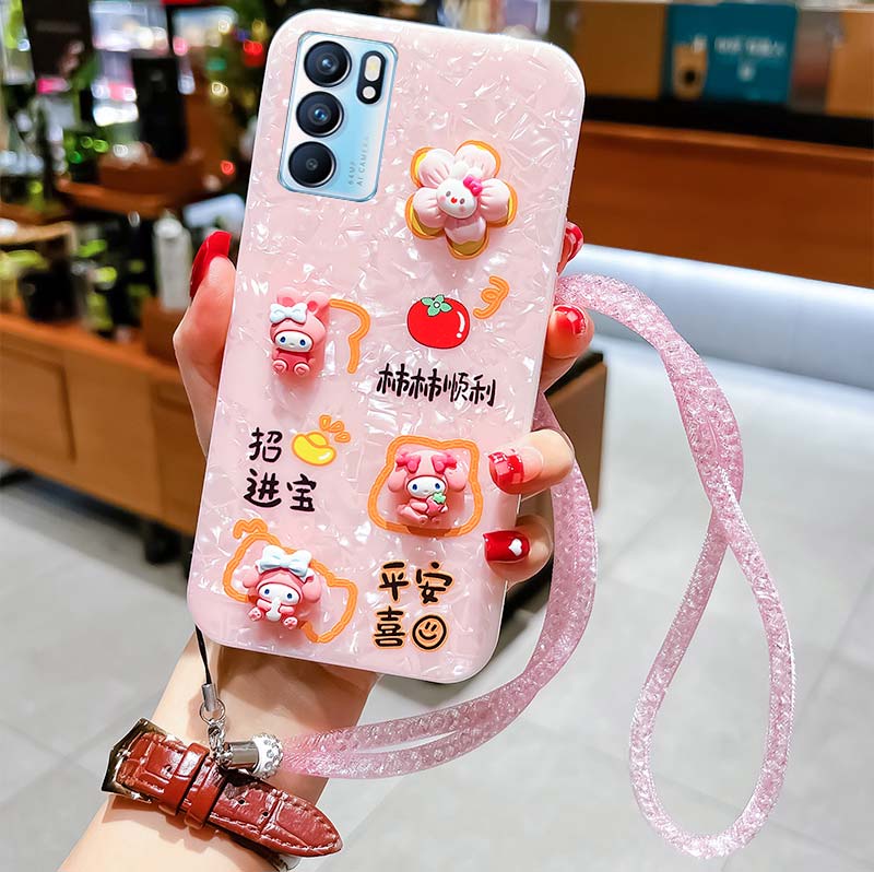 平安喜樂粉色貝殼紋2023新年款適用OPPOReno6手機殼新款6Pro十+高級感Reno7/8女款por卡通opop/k7/k5/k3/k1套