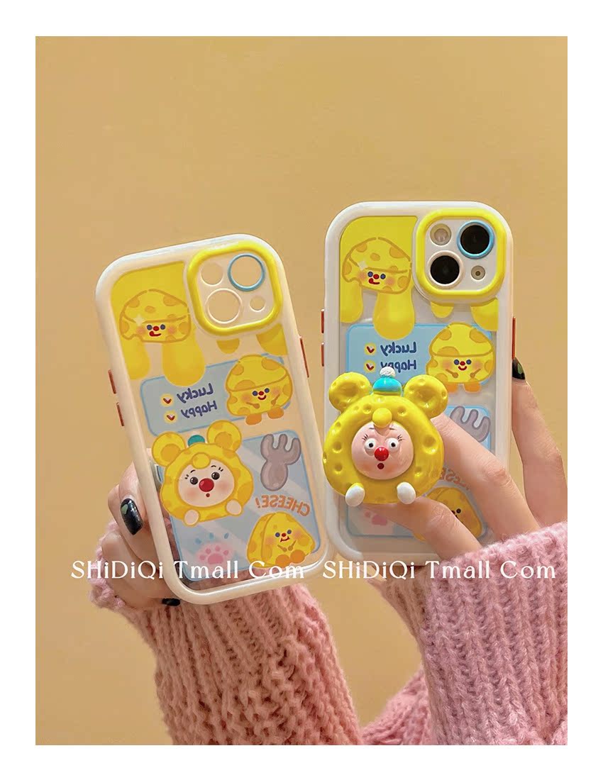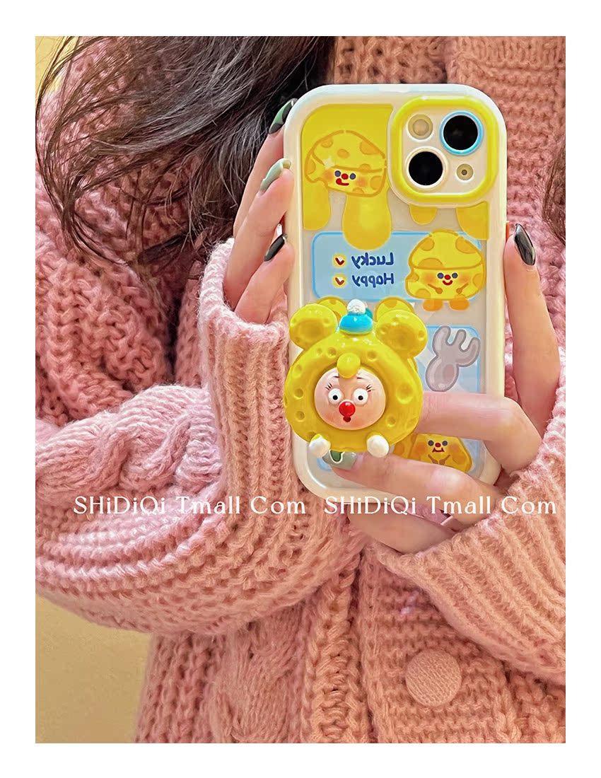 可愛卡通奶酪公仔支架適用蘋果14pro max手機殼iphone13新女款12硅膠軟殼11女款14pro創意13promax防摔手機套