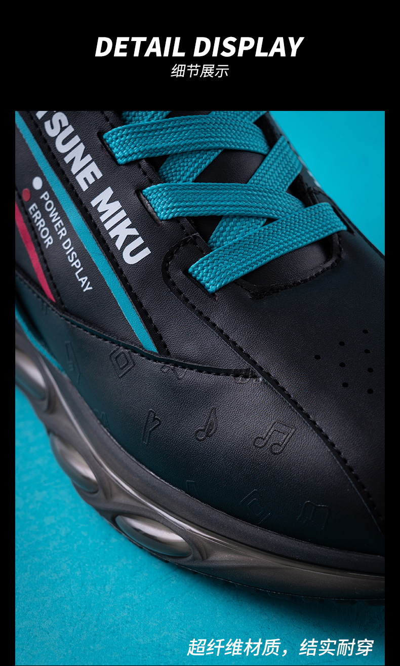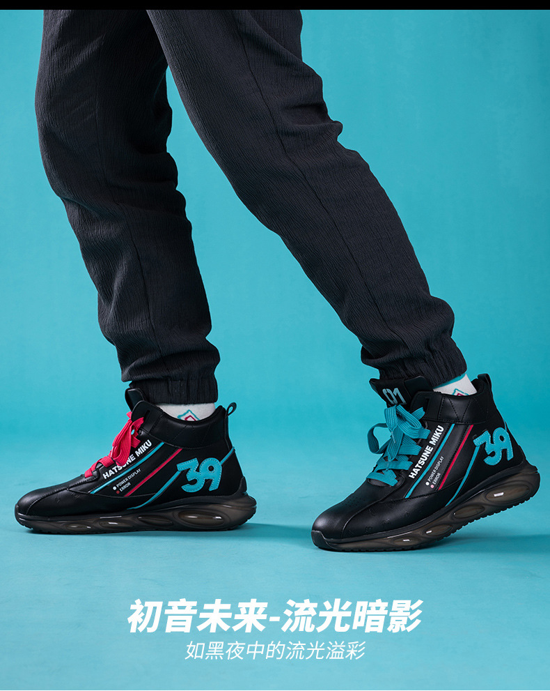 Moeyu初音未來聯名流光暗影休閑鞋miku反光絲印軟膠底高邦運動鞋