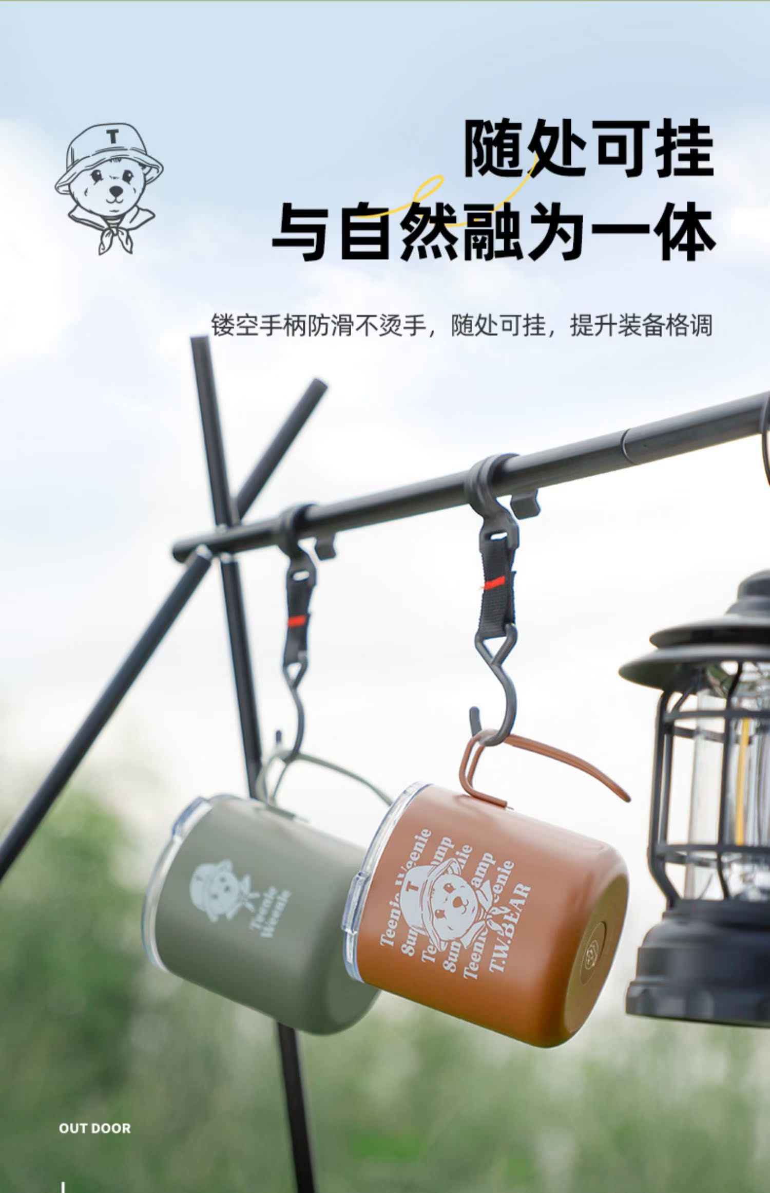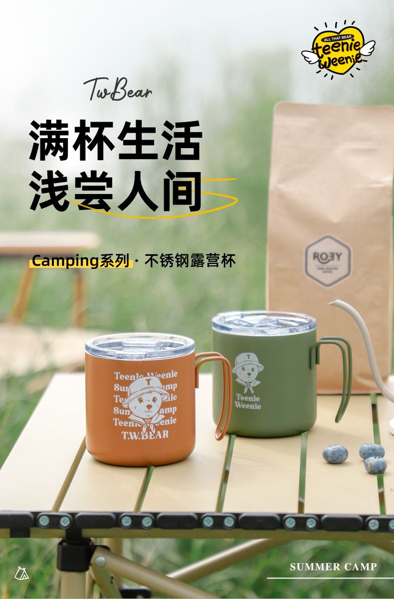不銹鋼露營杯女咖啡杯ins可愛帶蓋喝水杯TeenieWeenie保溫馬克杯