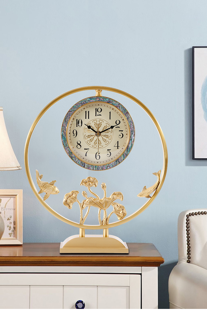 新中式黃銅座鐘客廳桌面裝飾擺放臺式時鐘表家用高端現代石英臺鐘