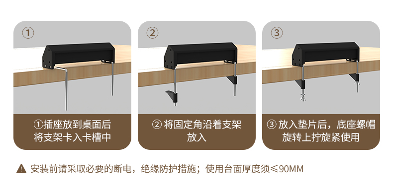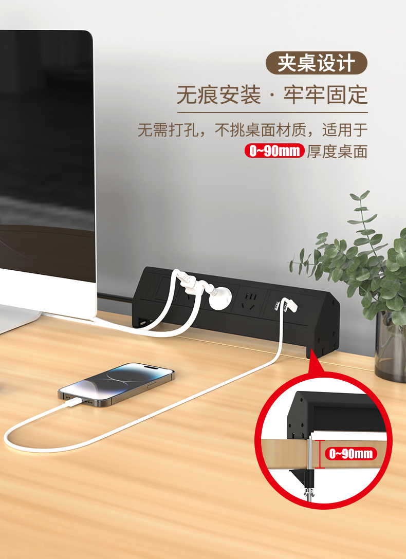 良工桌面桌餐桌辦公室夾桌插座帶USB充電排插家用接線板五孔帶線