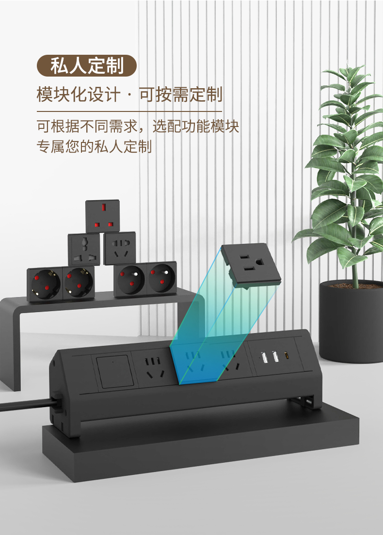 良工升降桌專用彈簧線插座USB伸縮插排 排插電腦桌面插接線板桌底