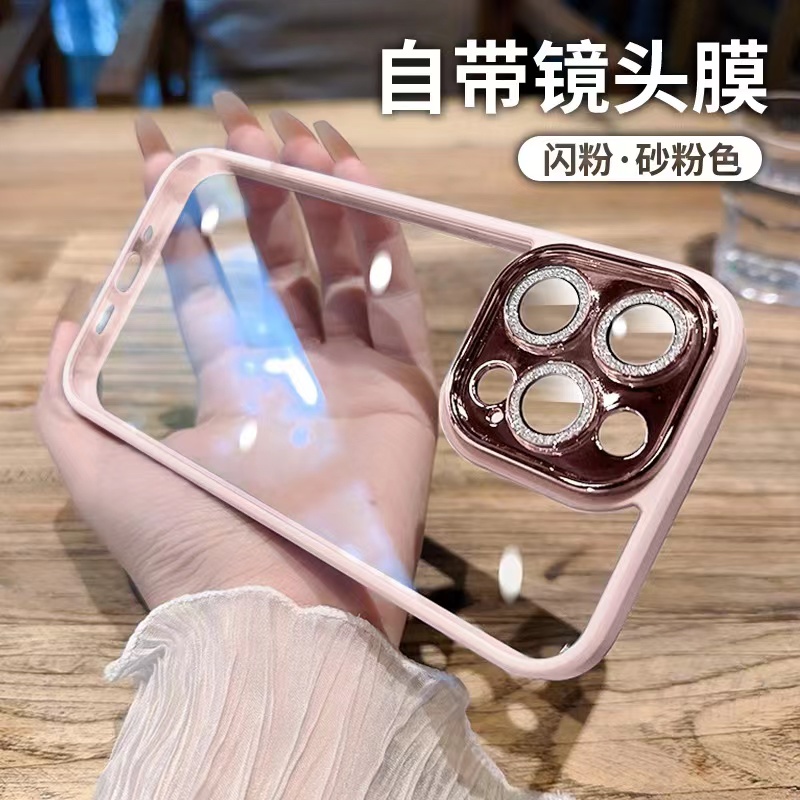 粉邊金屬鑲鉆鏡頭蘋果14promax手機殼新款iphone14pro高級感14蘋果13套12全包硅膠11防摔ProMax女Pro適用Plus