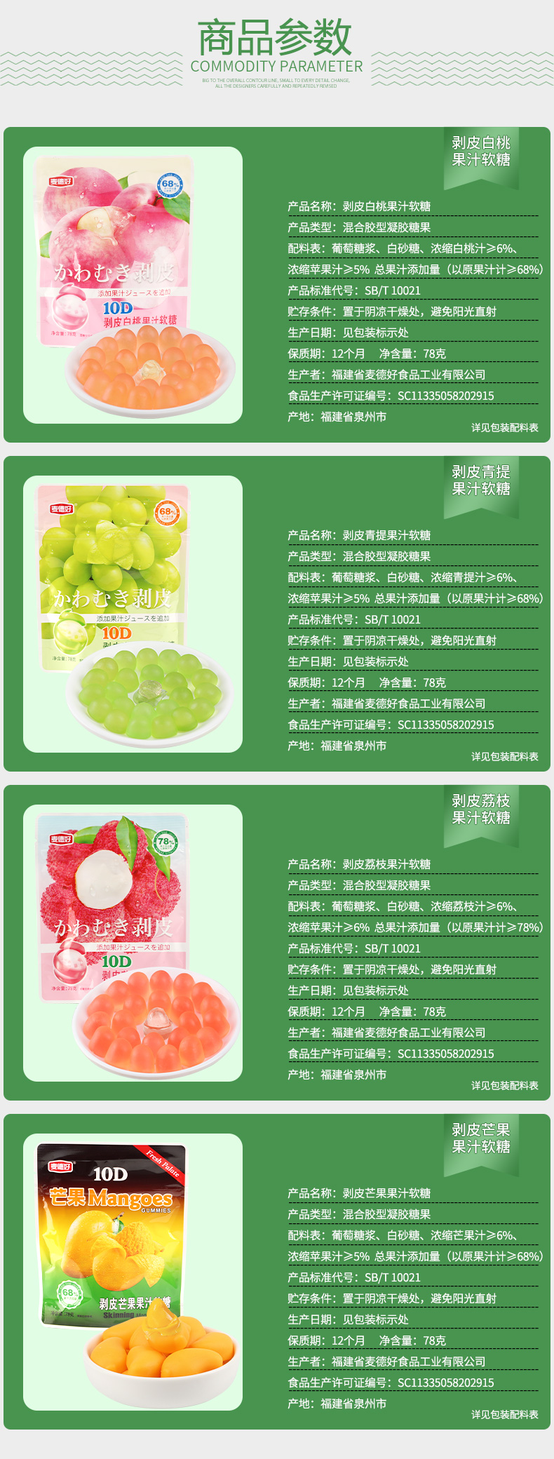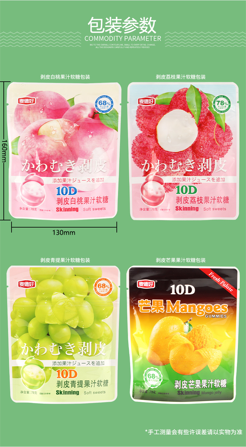 68%果汁麥德好剝皮芒果軟糖果多種口味兒童扒橡皮糖網紅休閑零食
