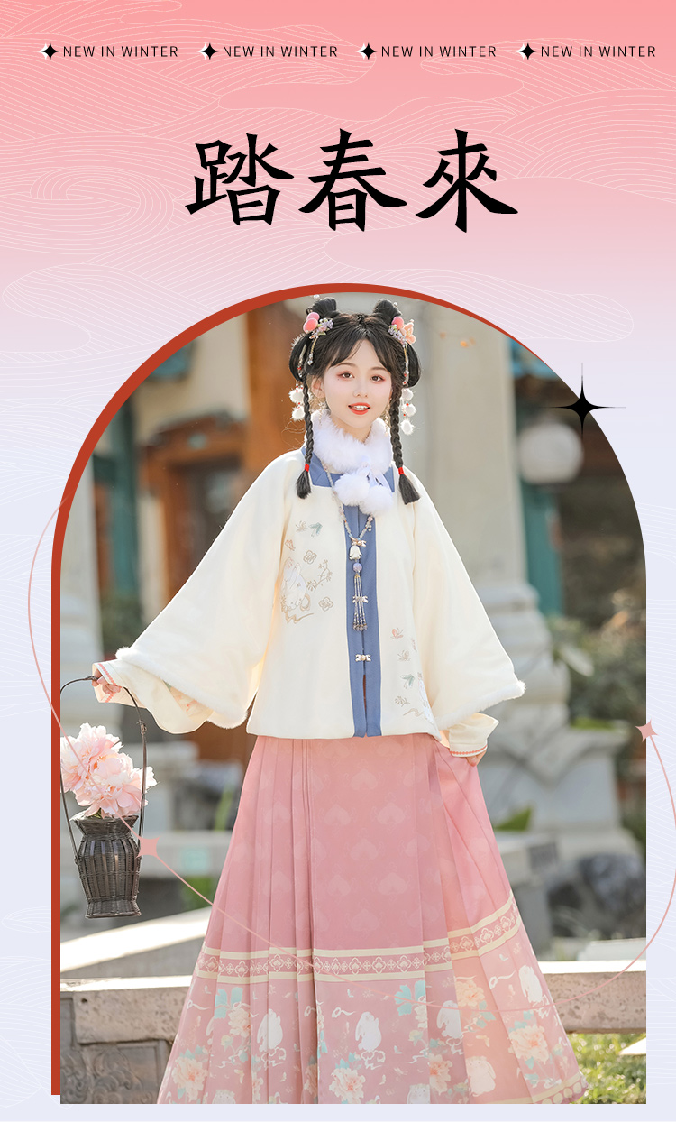 踏春來原創正品明制刺繡比甲馬面裙成人漢服女加絨披襖拜年服冬季