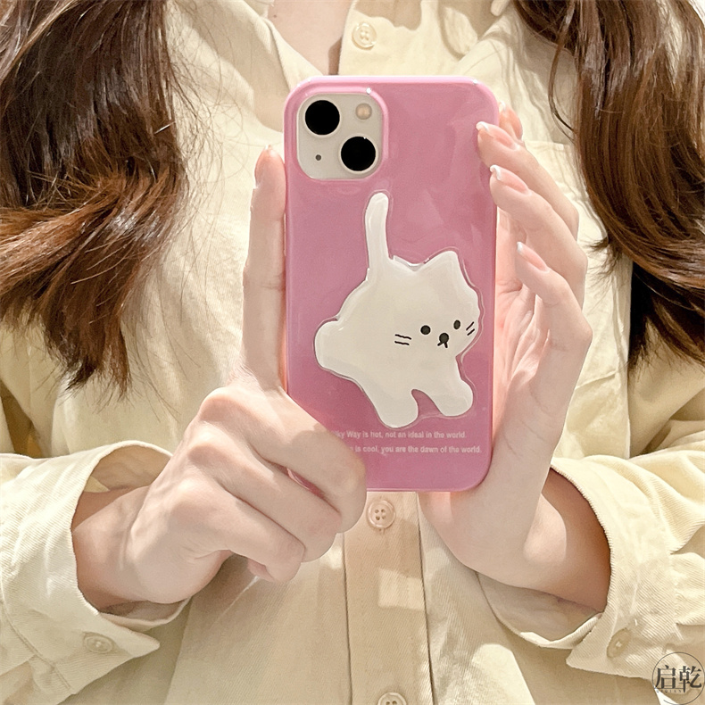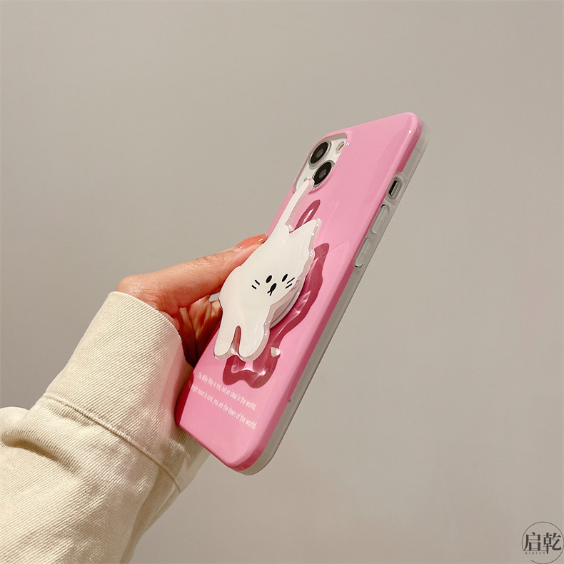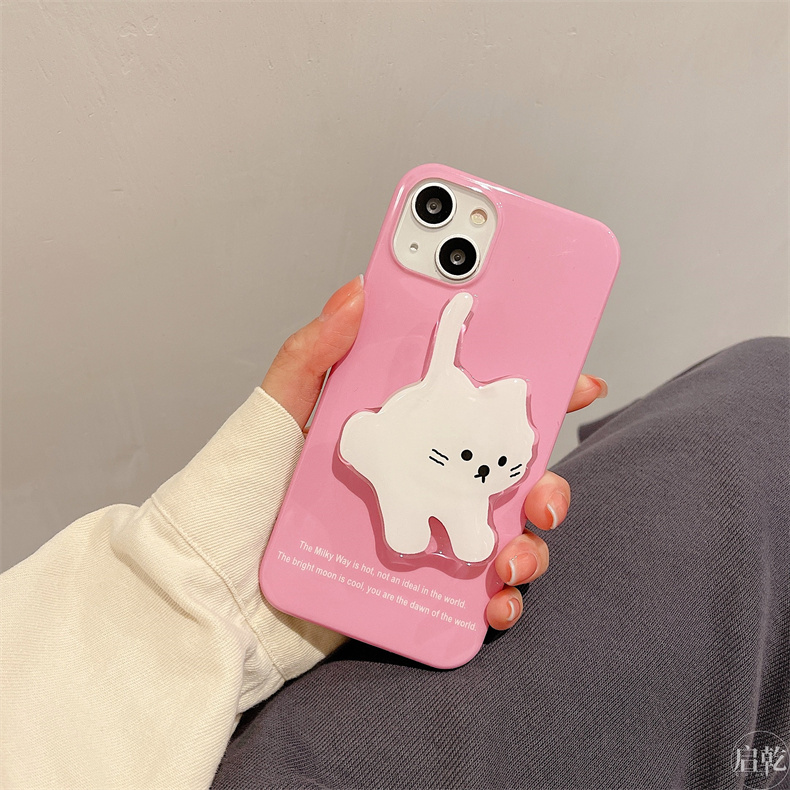 支架殼可愛貓咪iphone14手機殼適用蘋果13promax粉色系12/11簡約小眾14plus趣味卡通少女心新款硅膠十四啟乾