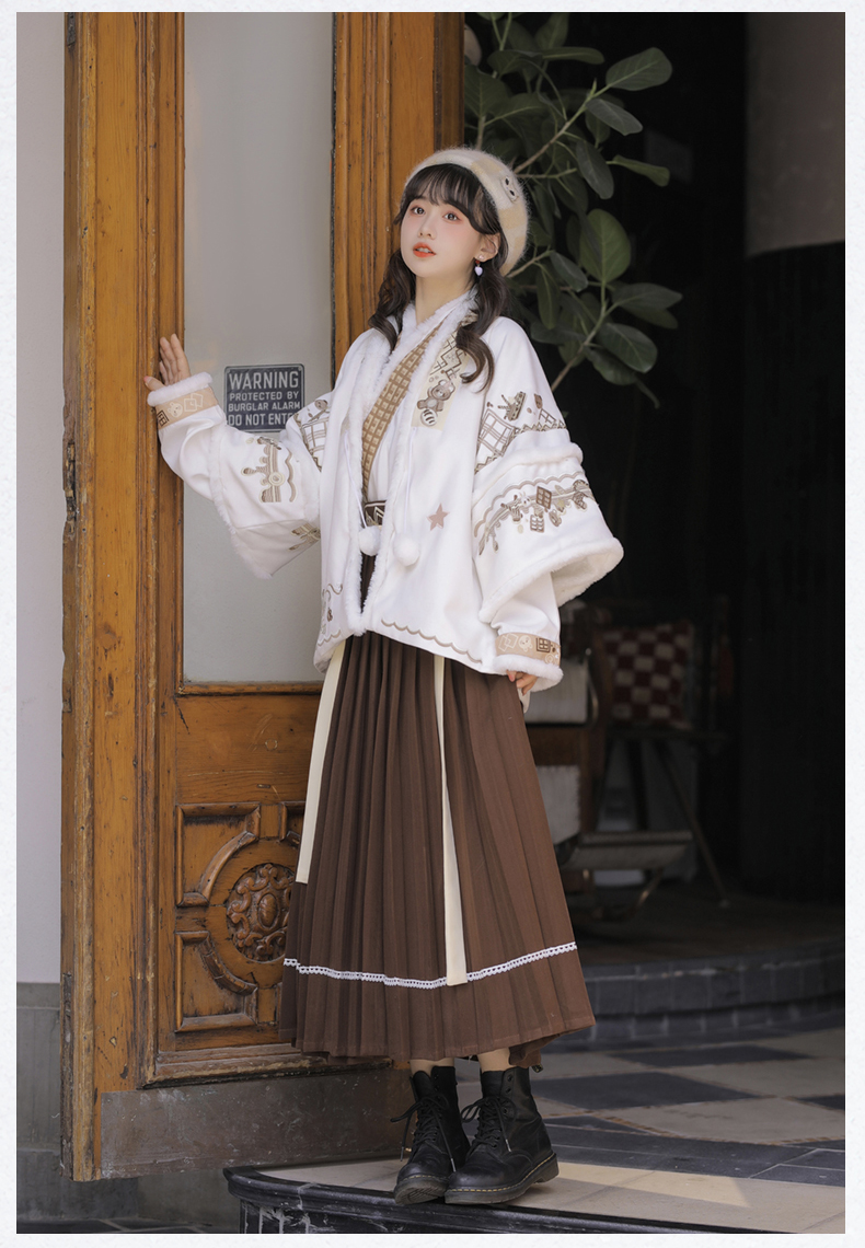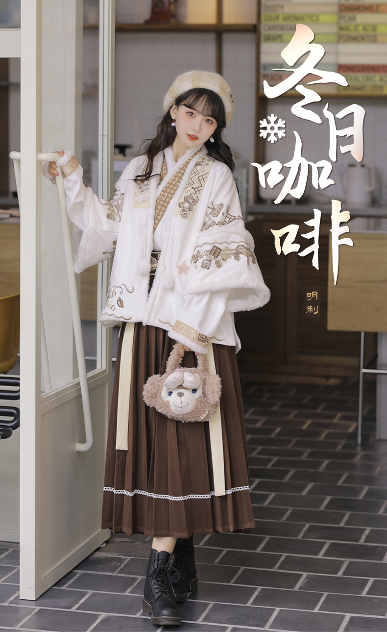 冬日咖啡原創漢服女毛呢外套日常改良中國風漢元素新年拜年服古裝