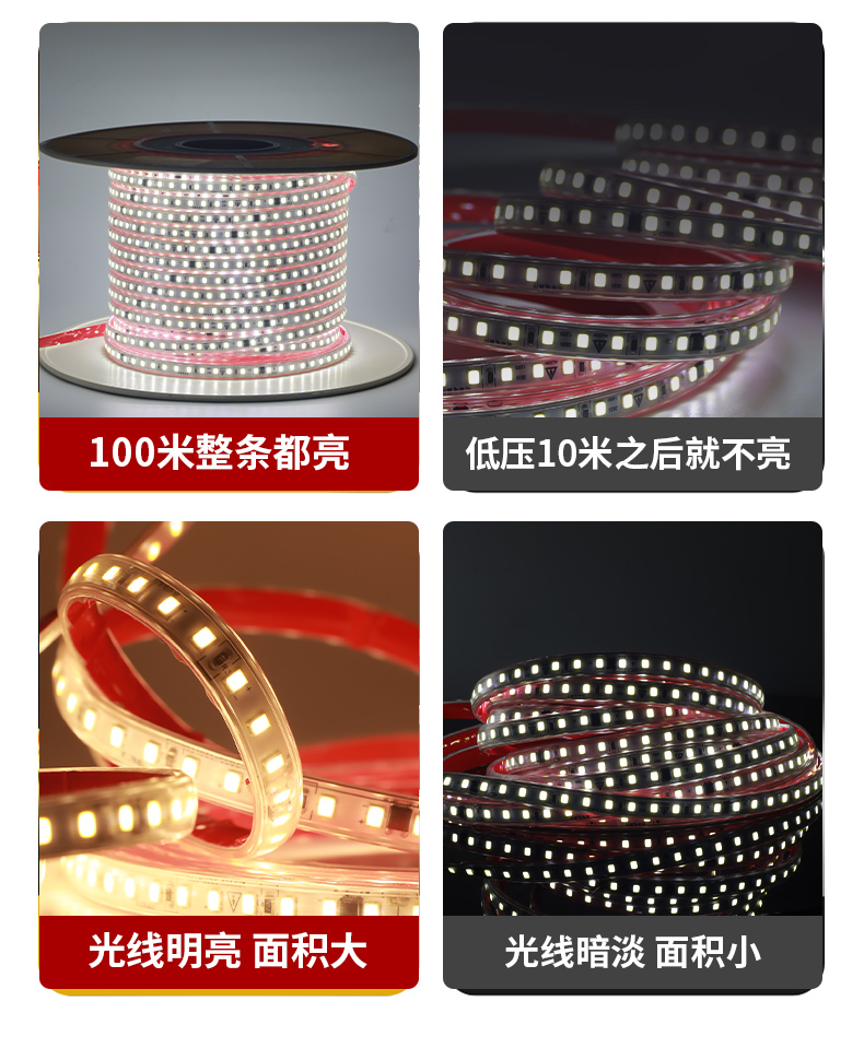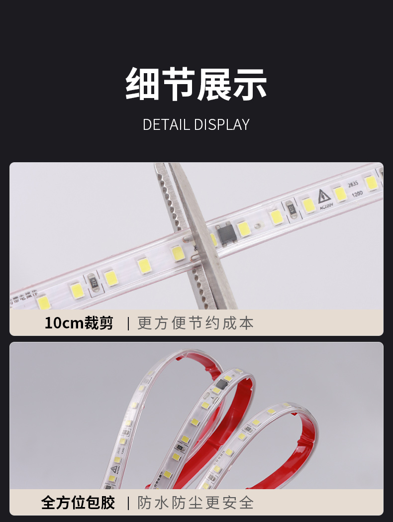 超亮220V軟燈帶10cm裁剪自粘led柜子貨架裝飾線條燈貼片防水燈條