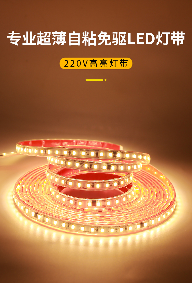 超薄led軟燈帶220V高壓背膠雙排高亮自粘展柜線槽裝飾貼片軟燈條