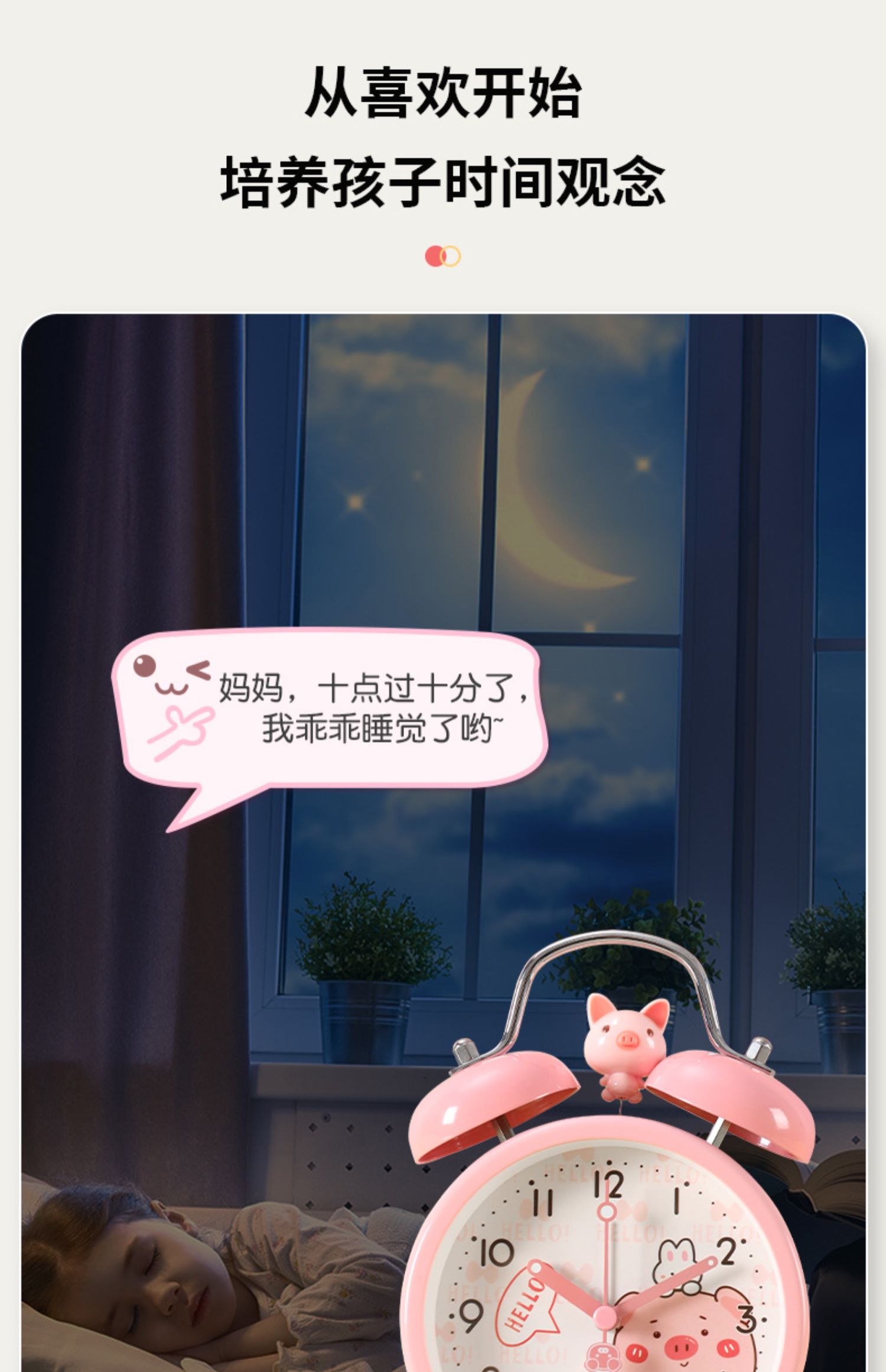 小豬卡通鬧鐘女孩專用兒童起床神器大音量2023新款學生用自律時鐘