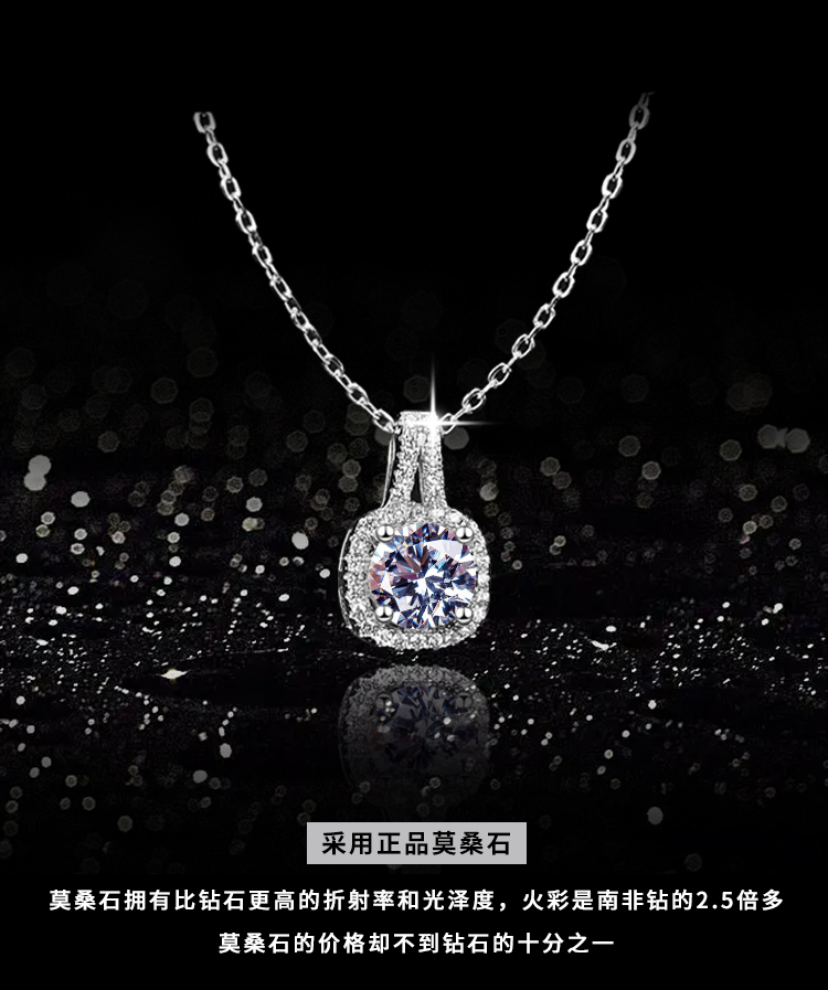 A STAR莫桑石18K白金公主方圍鉆項鏈女不掉色純銀鉆石吊墜送女友