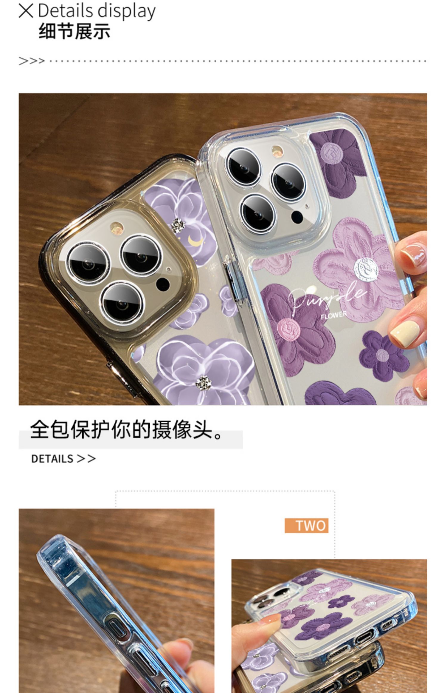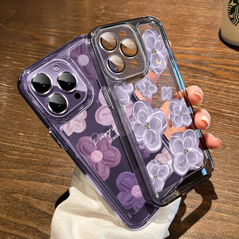 酷圖適用蘋果14promax手機殼新款油畫花朵iPhone14pro自帶鏡頭膜保護套13全包plus個性透明防摔12高級感pm女