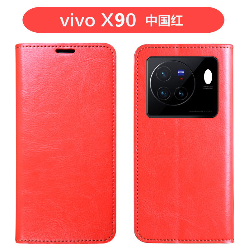 vivox90手機殼x90s新款真皮翻蓋式保護殼鏡頭全包防摔牛皮保護套VIVOX90pro+手機套商務可插卡自帶支架男女款