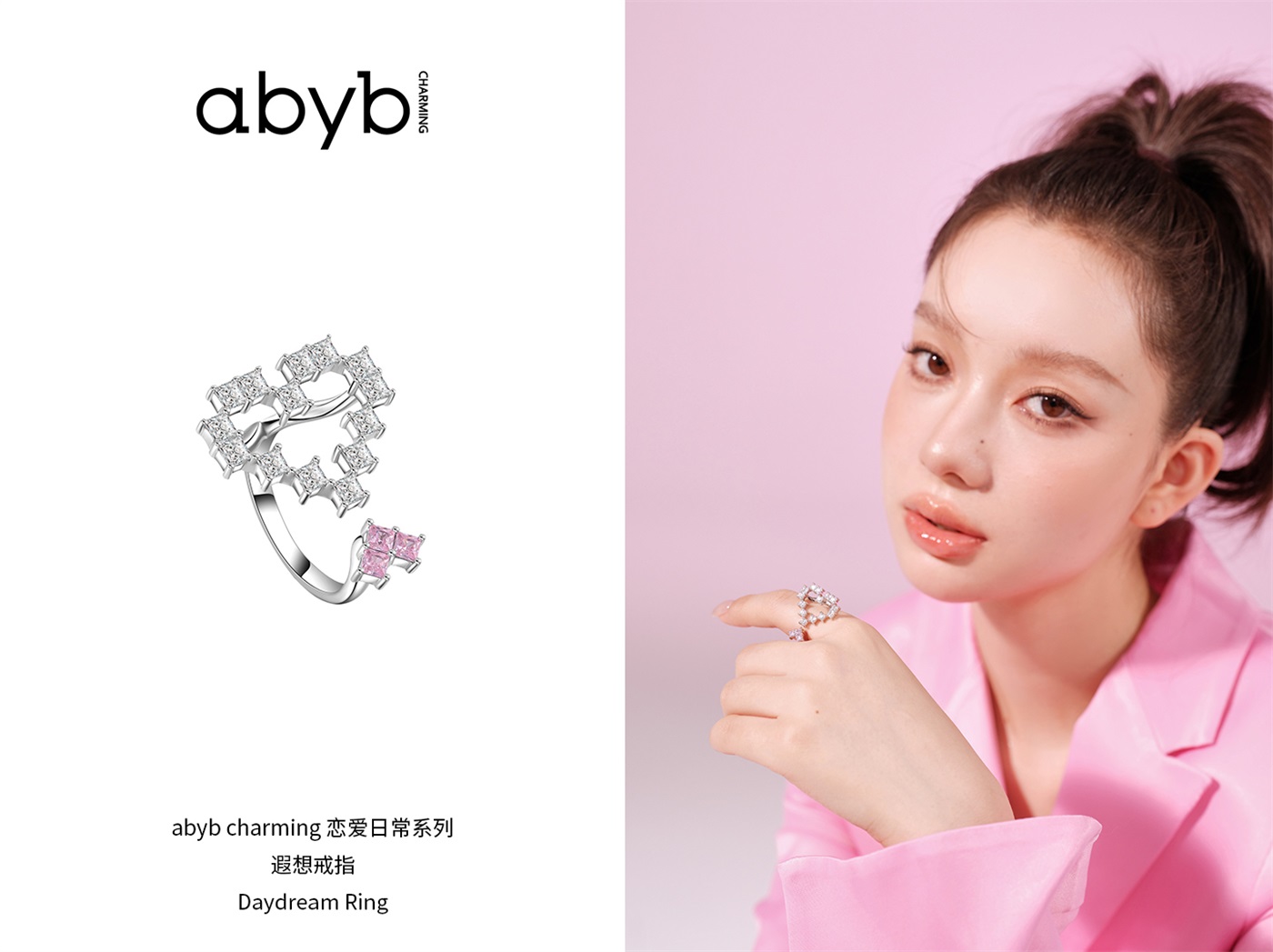 ABYB CHARMING 遐想戒指愛心開口戒百搭原創設計飾品首飾小眾