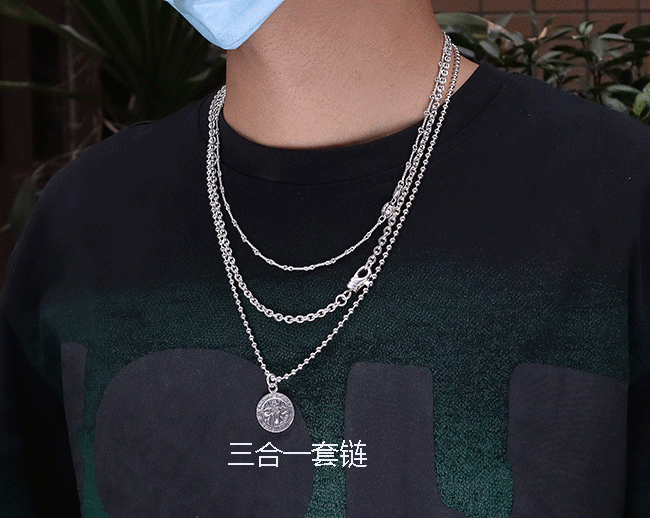 余文樂同款天使珠子鏈竹節鏈O形鏈疊戴項鏈男925純銀設計感小眾