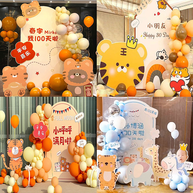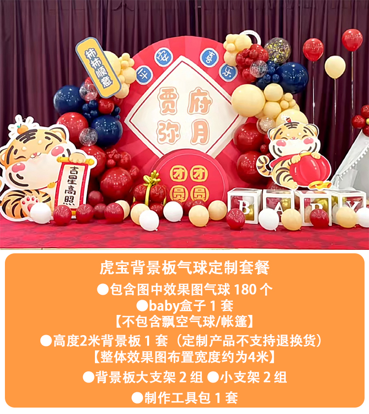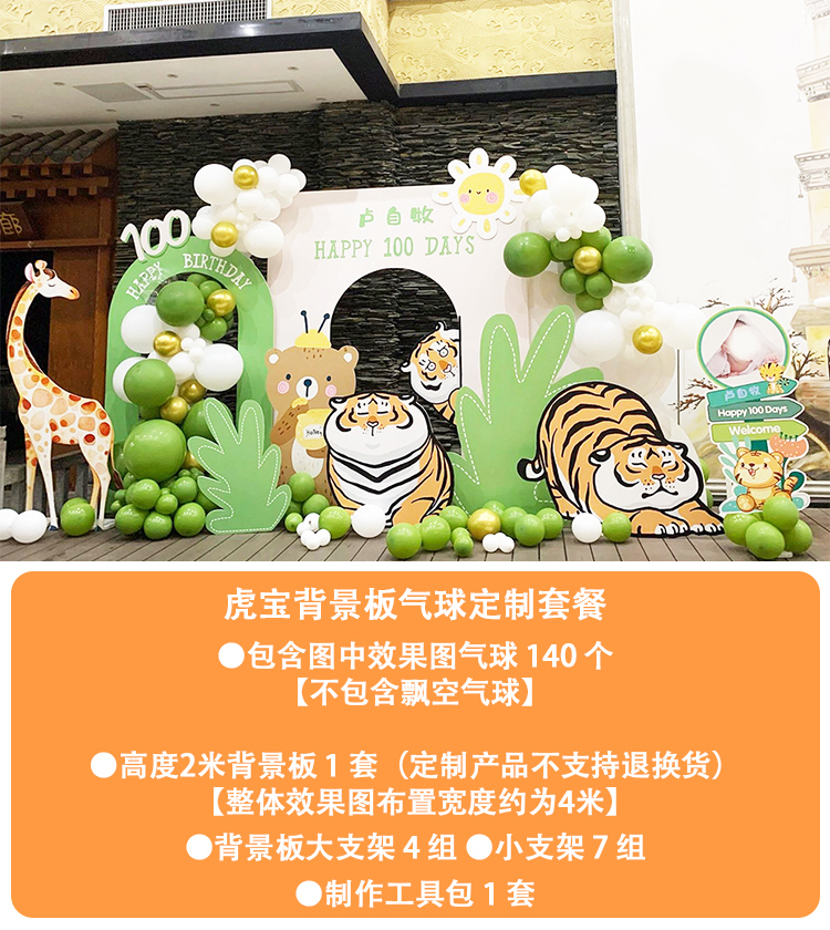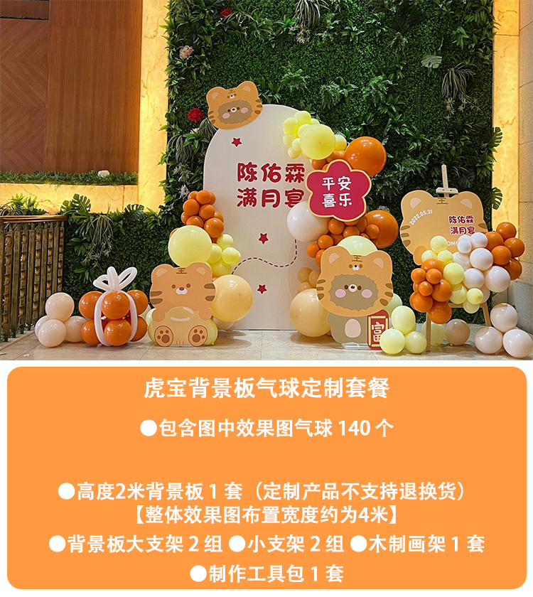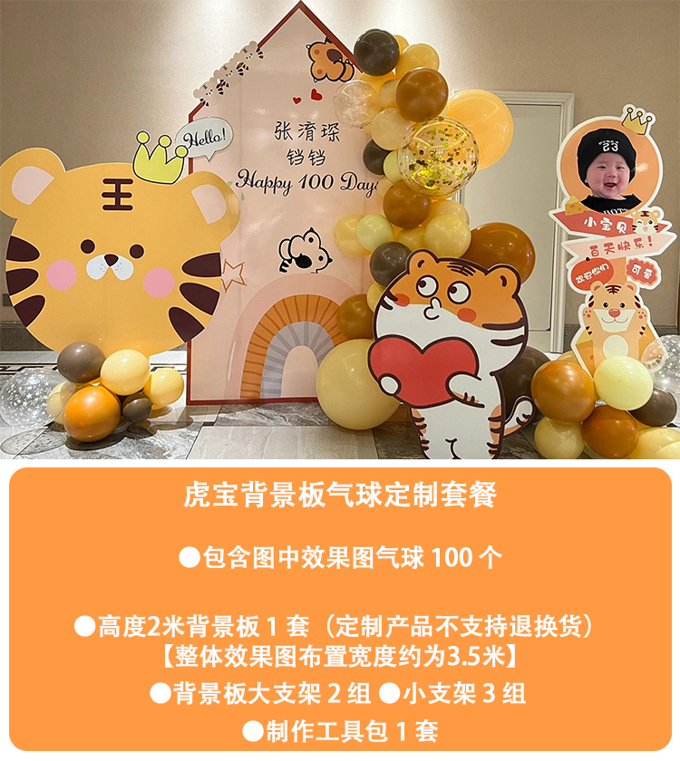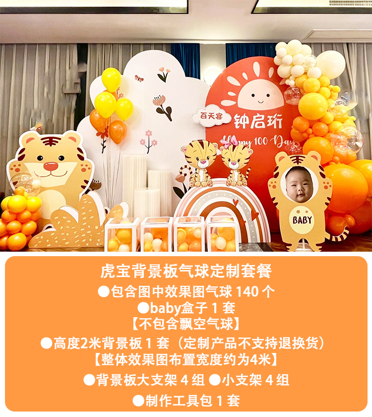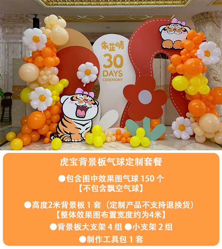 虎寶寶男女孩滿月酒百天周歲生日派對宴會背景墻kt版場景裝飾布置