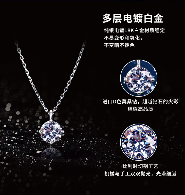 A STAR莫桑石18K白金項鏈女925純銀不掉色鉆石單鉆送女友禮物超閃