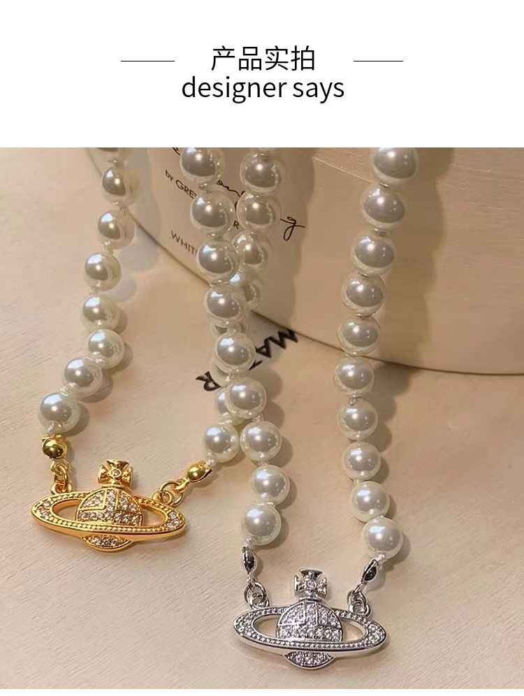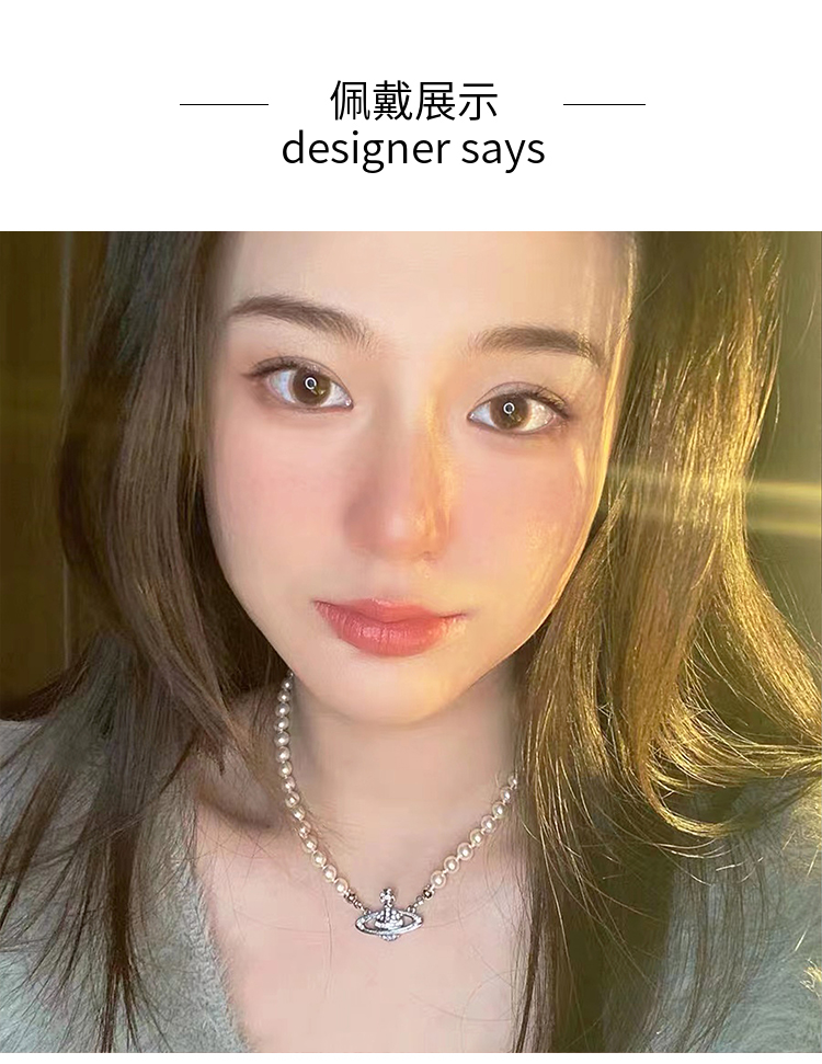 歐陽娜娜虞書欣同款西太后土星別針珍珠項鏈女輕奢小眾毛衣鎖骨鏈