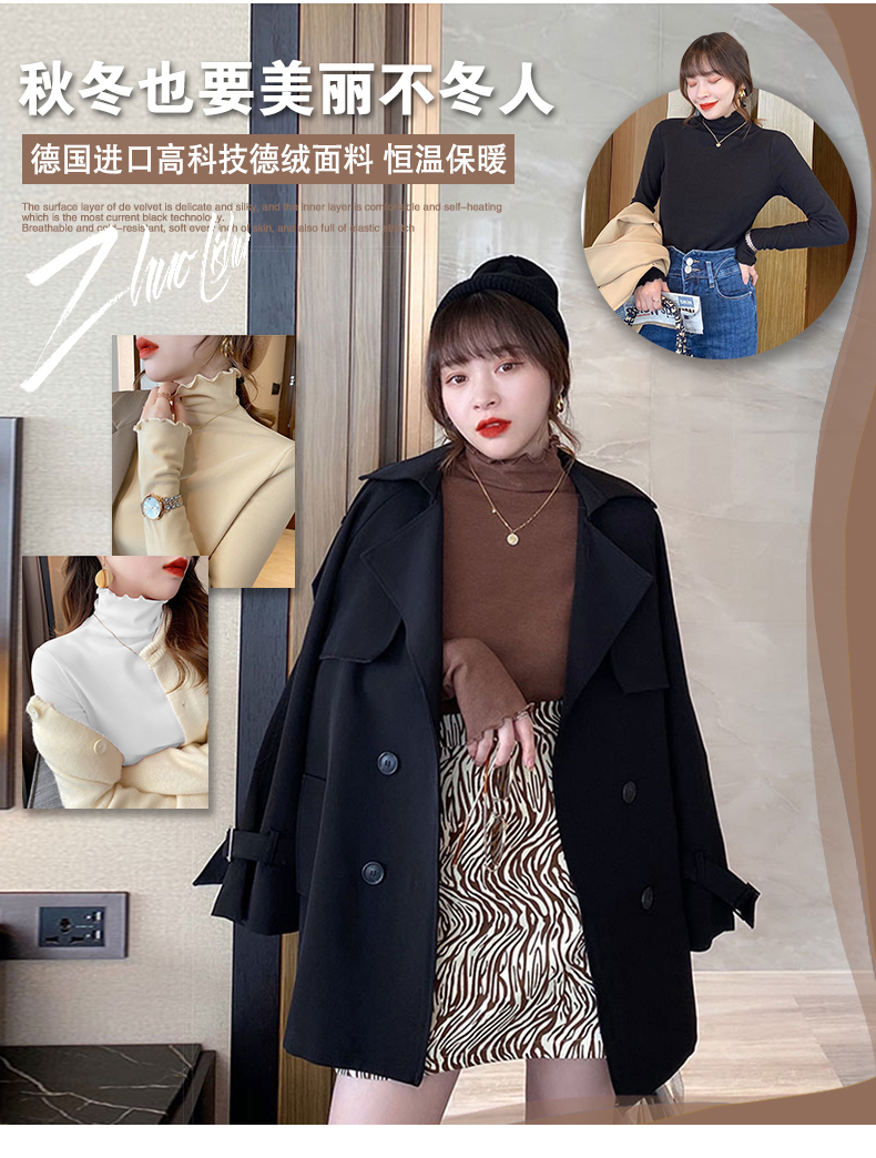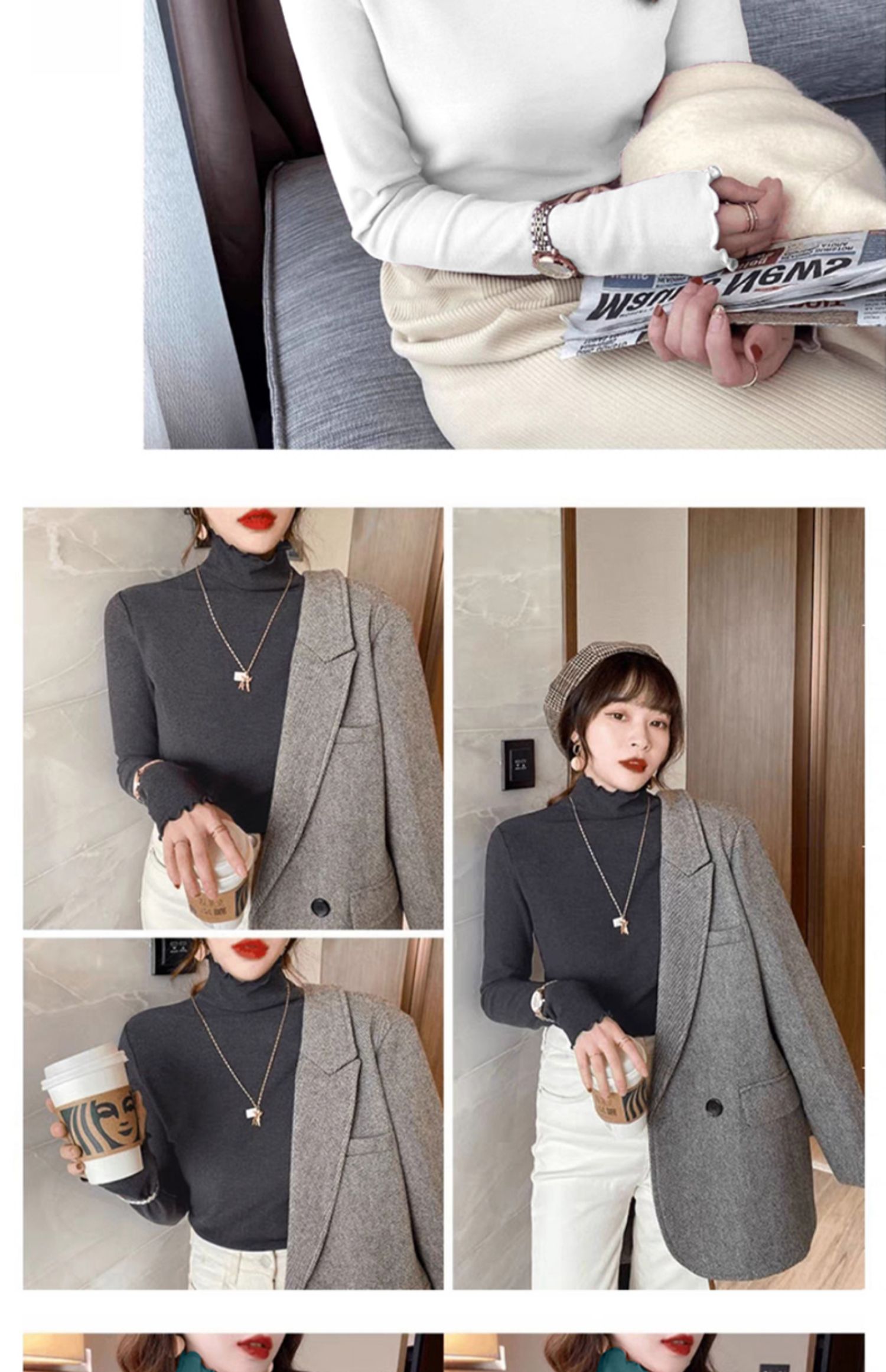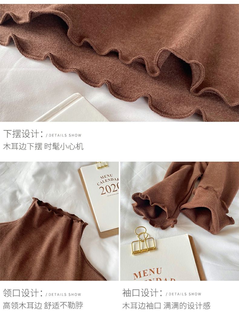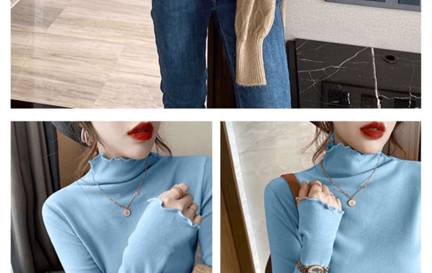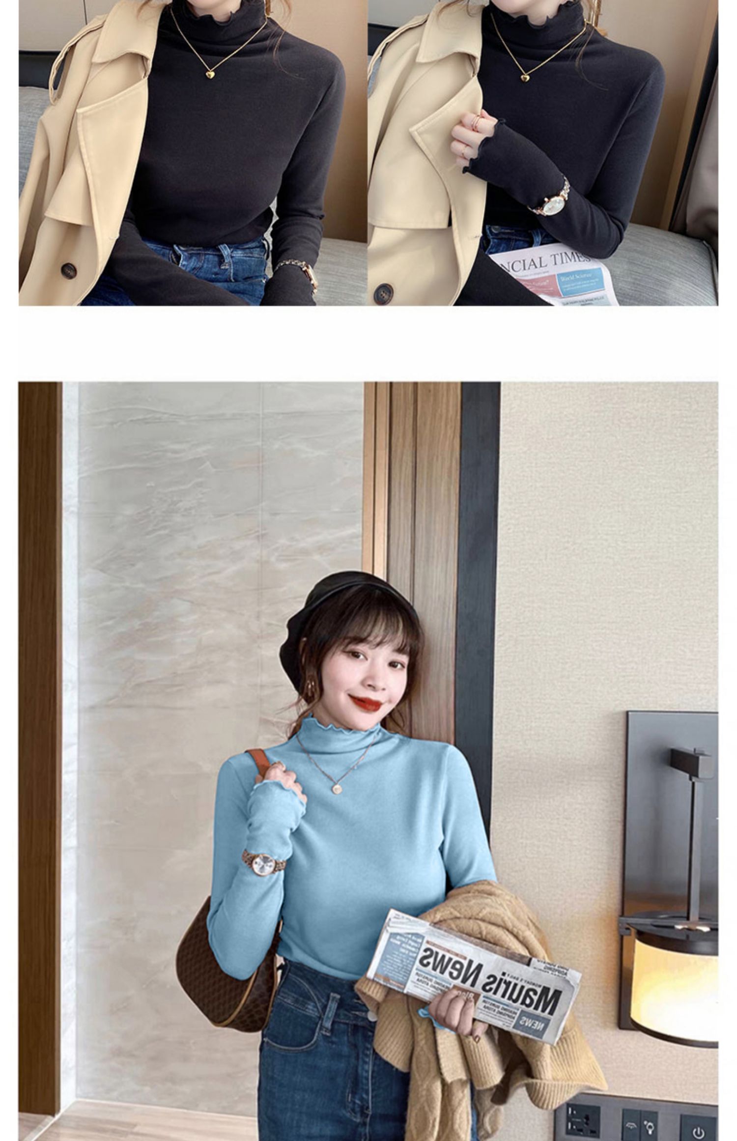 德絨加厚半高領打底衫女秋冬內搭修身木耳邊中領上衣保暖加絨長袖