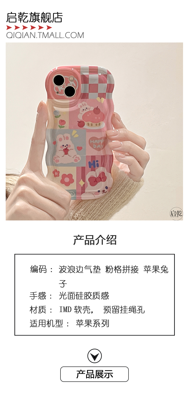 粉色棋盤格兔子手機殼適用蘋果硅膠