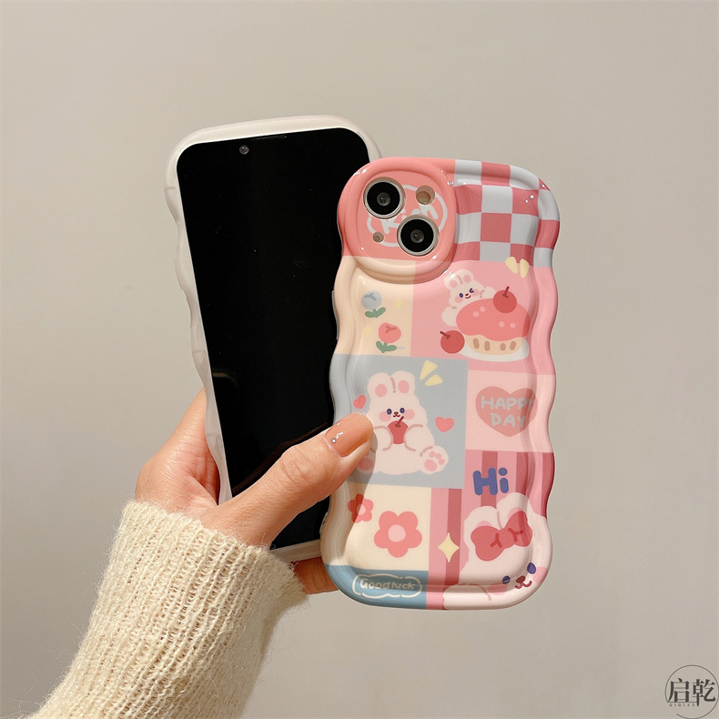 可愛甜品兔子iphone14手機殼適用蘋果13promax波浪邊12/11粉色14plus卡通少女心新款硅膠鏡頭全包防摔啟乾
