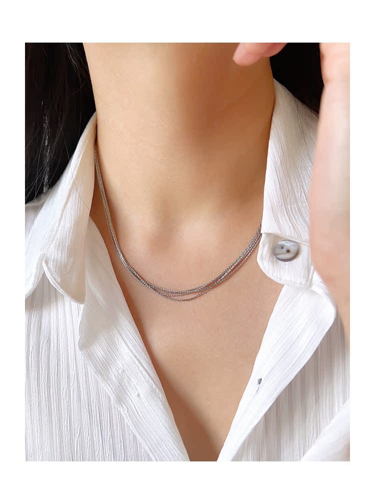 不怕水鈦鋼高級感千絲萬縷多層項鏈女簡約氣質日常疊戴鎖骨頸鏈潮