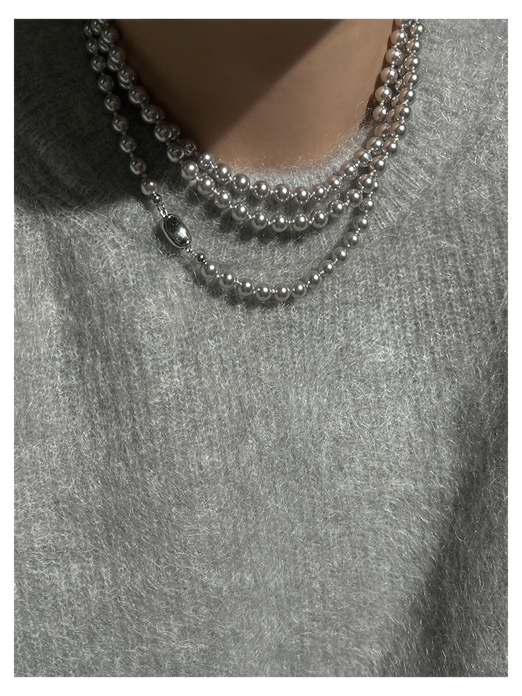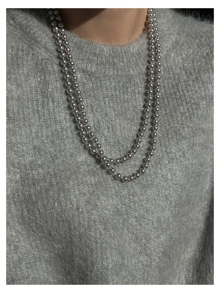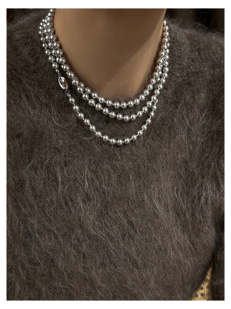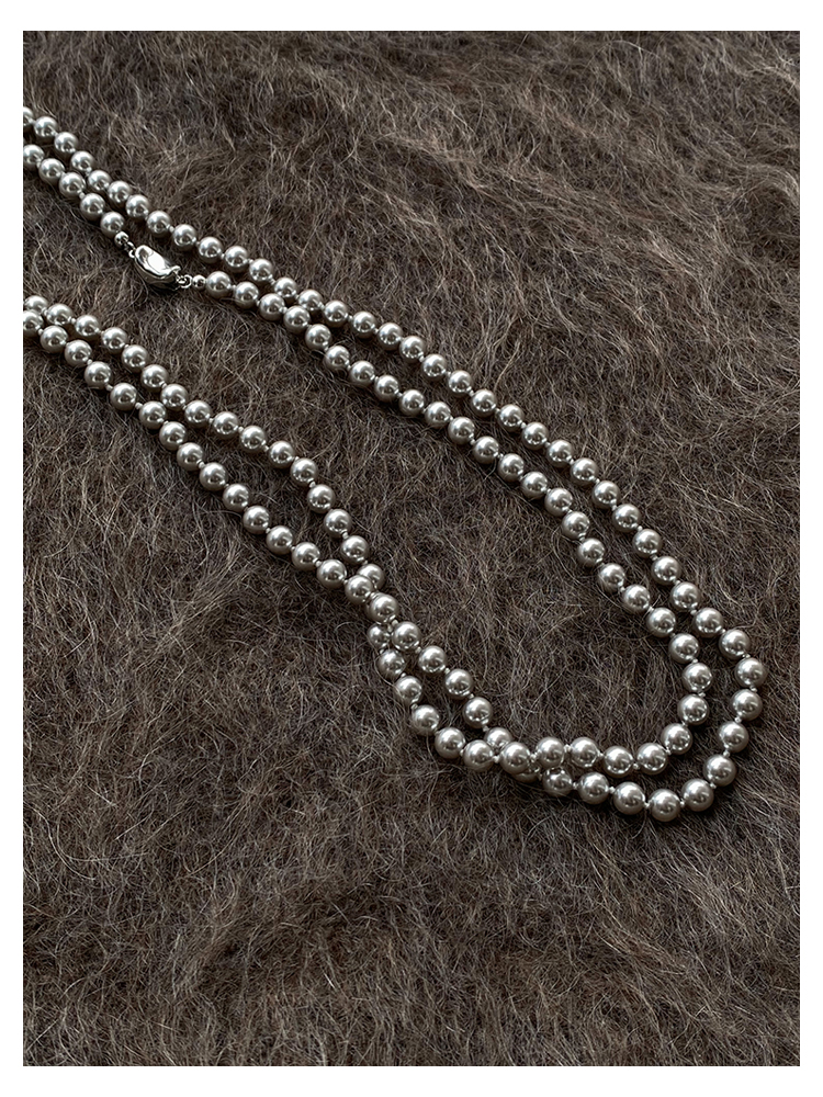 DOUDOUSTORE時髦休閑銀灰色施家珍珠項鏈高級真多麻色疊戴鎖骨鏈
