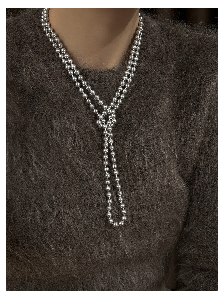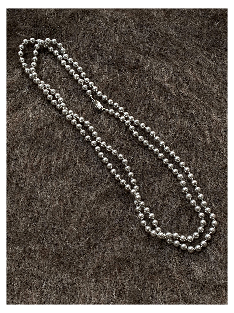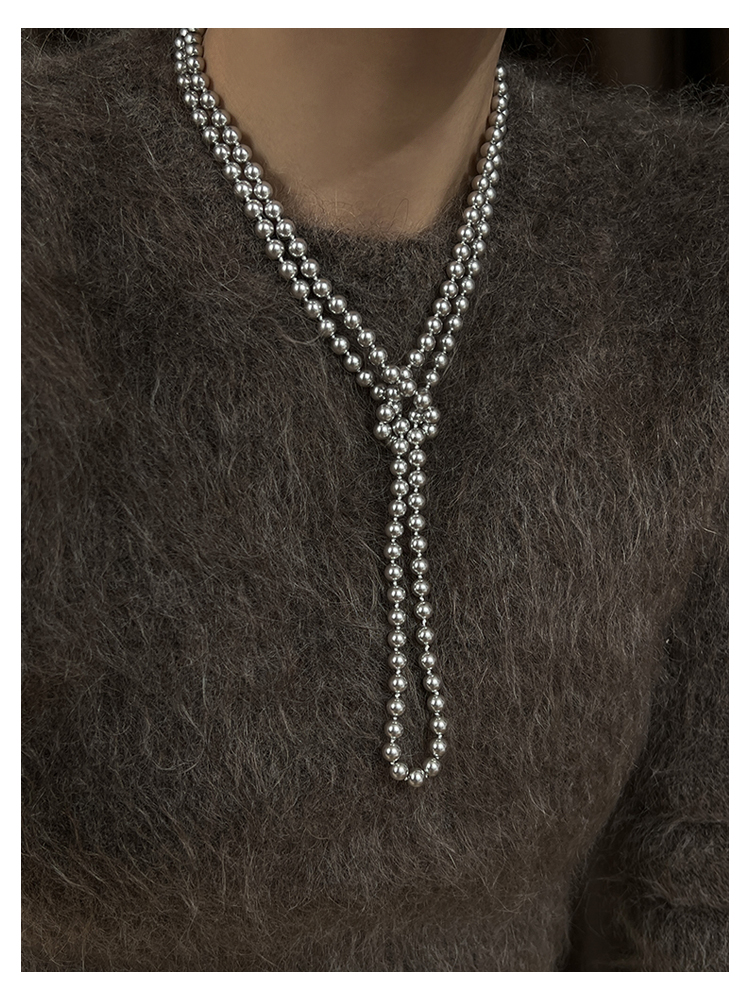 DOUDOUSTORE超長120cm真多麻色灰色珍珠項鏈女秋冬百搭毛衣鏈