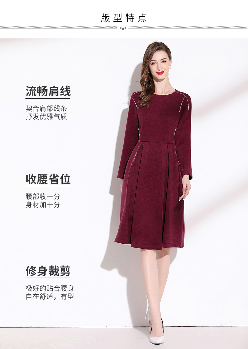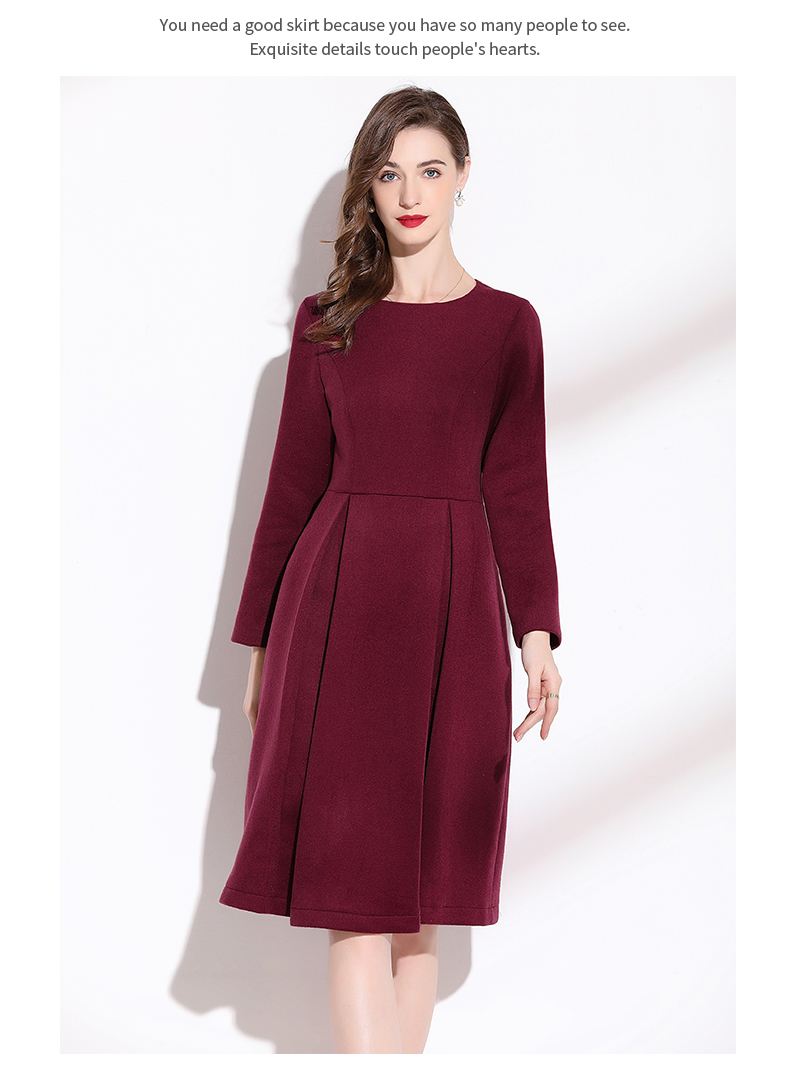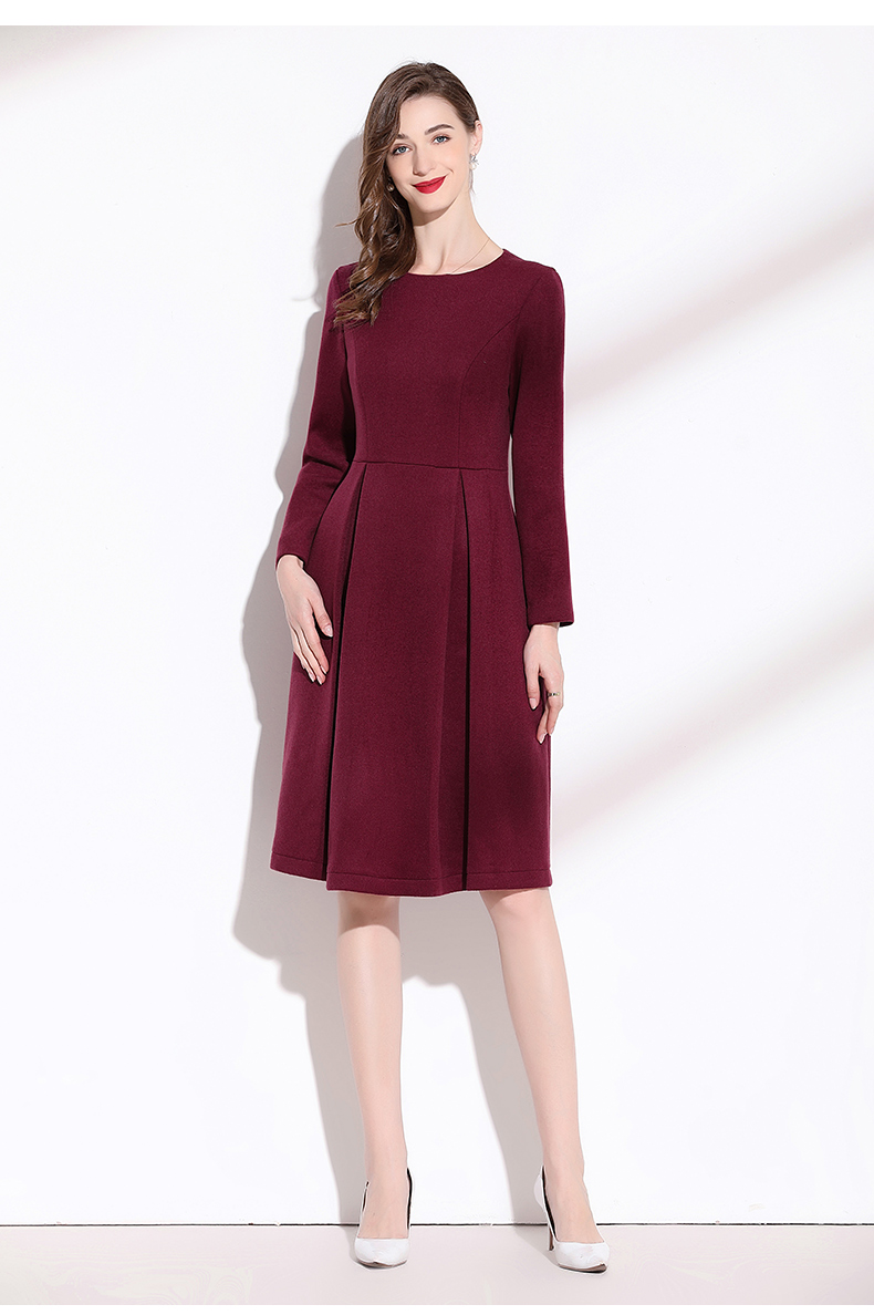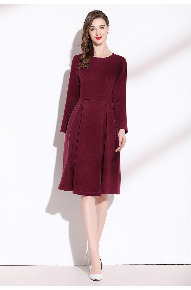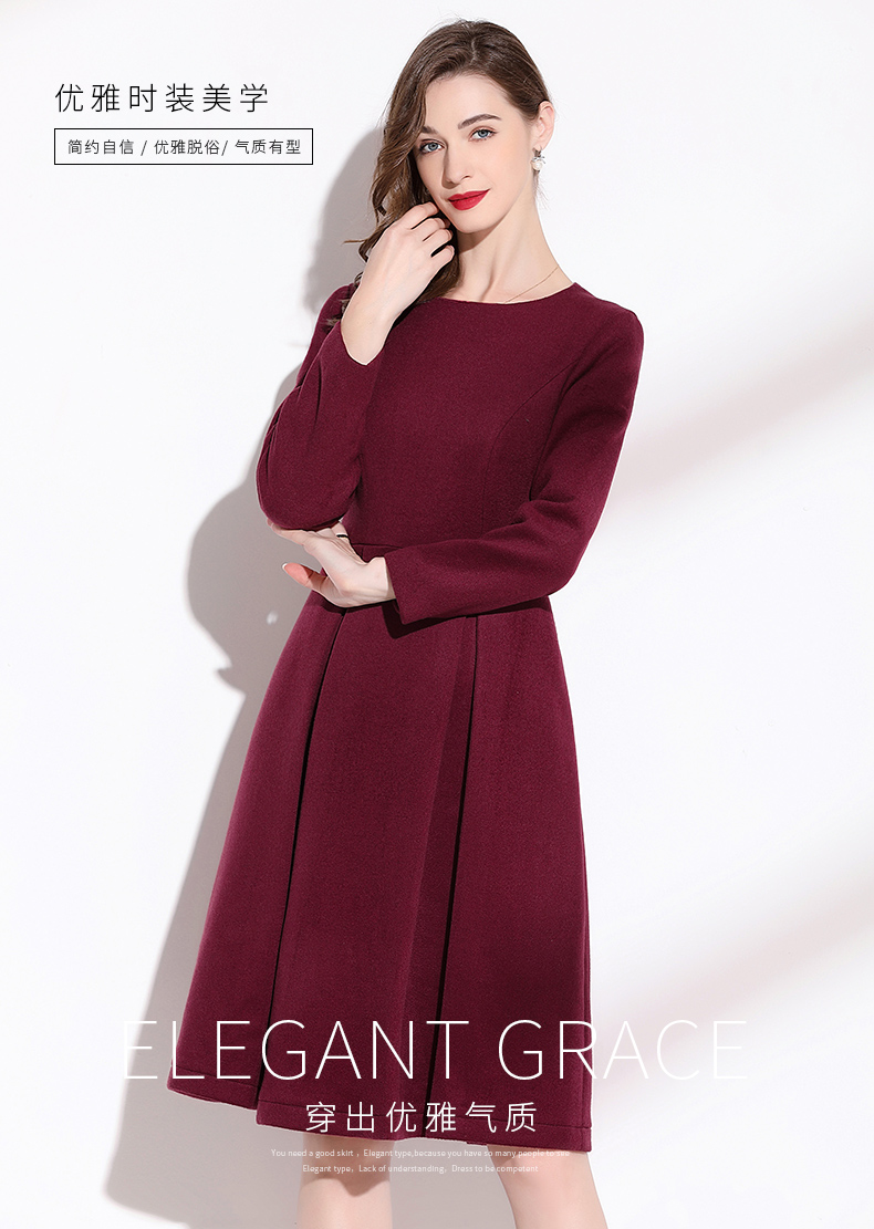 嘉瓦娜2022秋冬新款酒紅色連衣裙