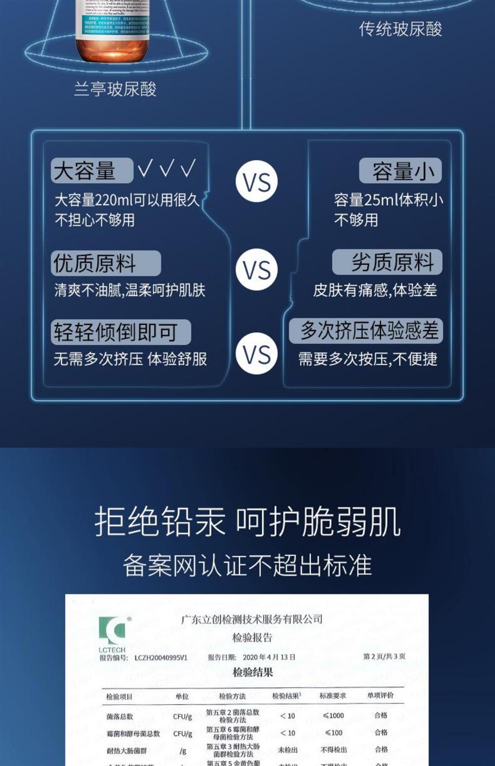 蘭亭玻尿酸原液220ml補水保濕修護收縮毛孔面部精華液官方正品女