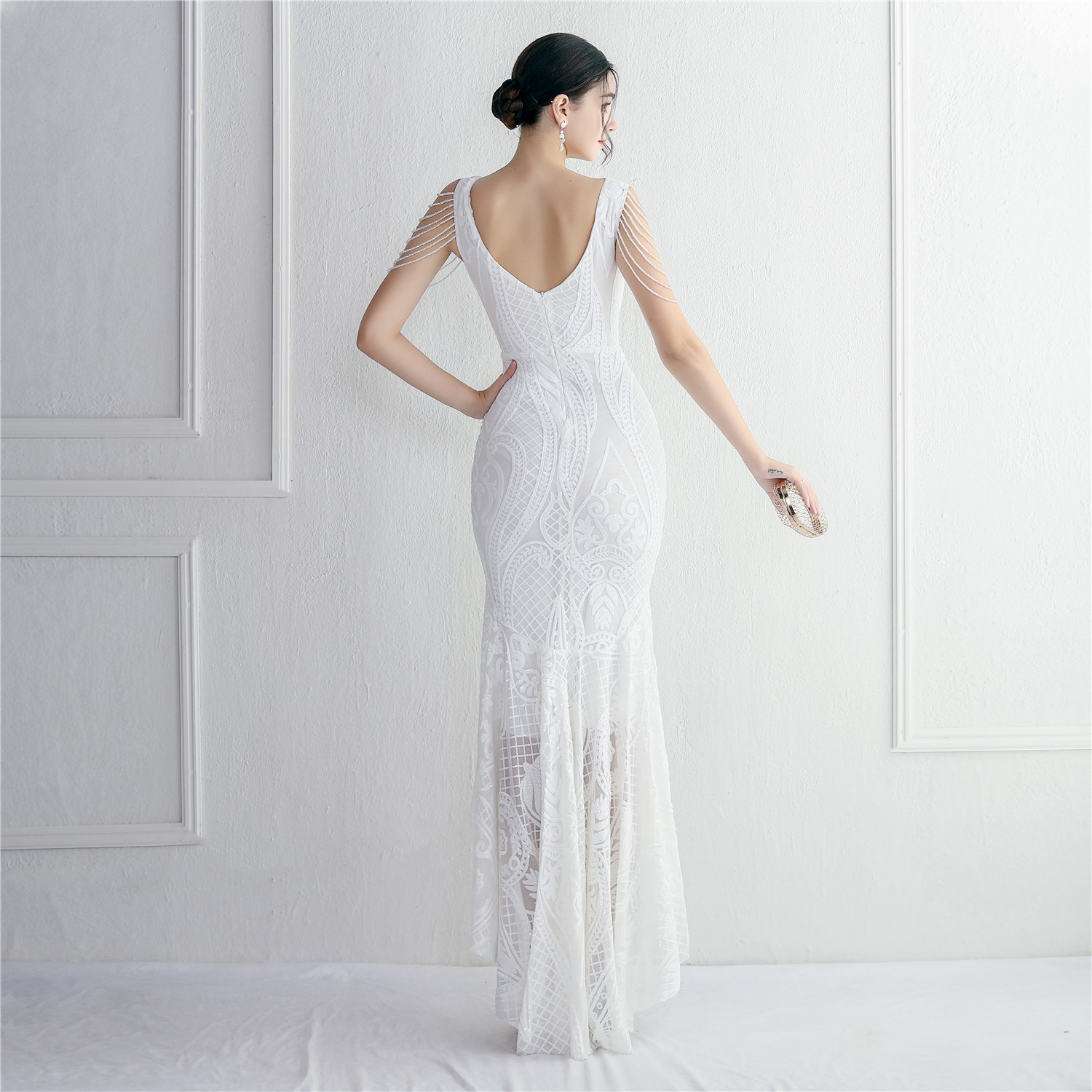 2023新款前短后長不規則下擺連衣裙女氣質優雅年會長款魚尾晚禮服