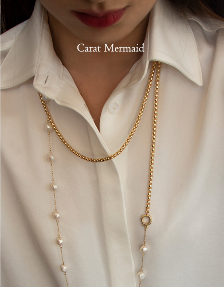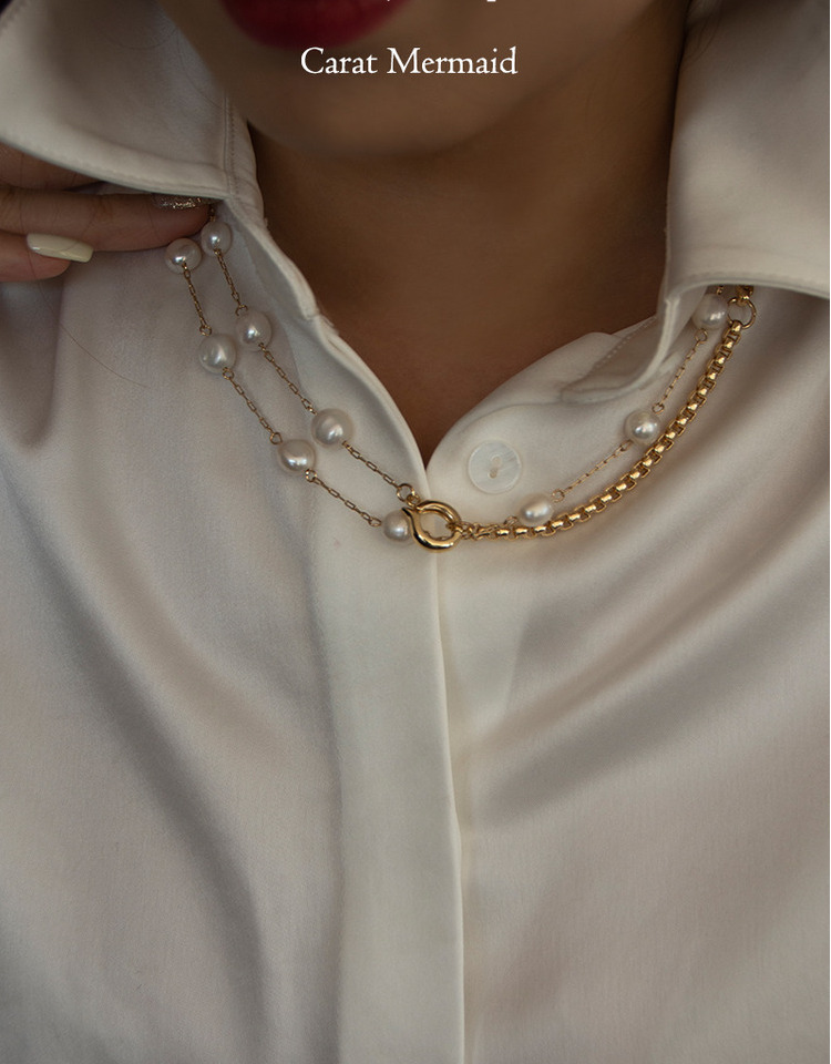 克拉人魚巴洛克珍珠雙層項鏈疊戴輕奢小眾高級多層鎖骨鏈毛衣鏈長