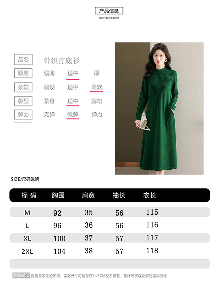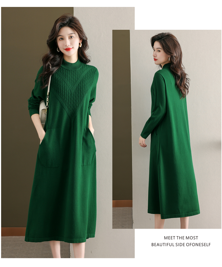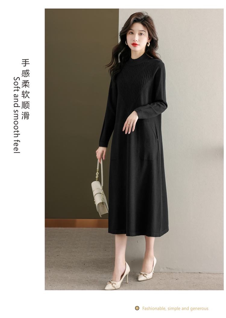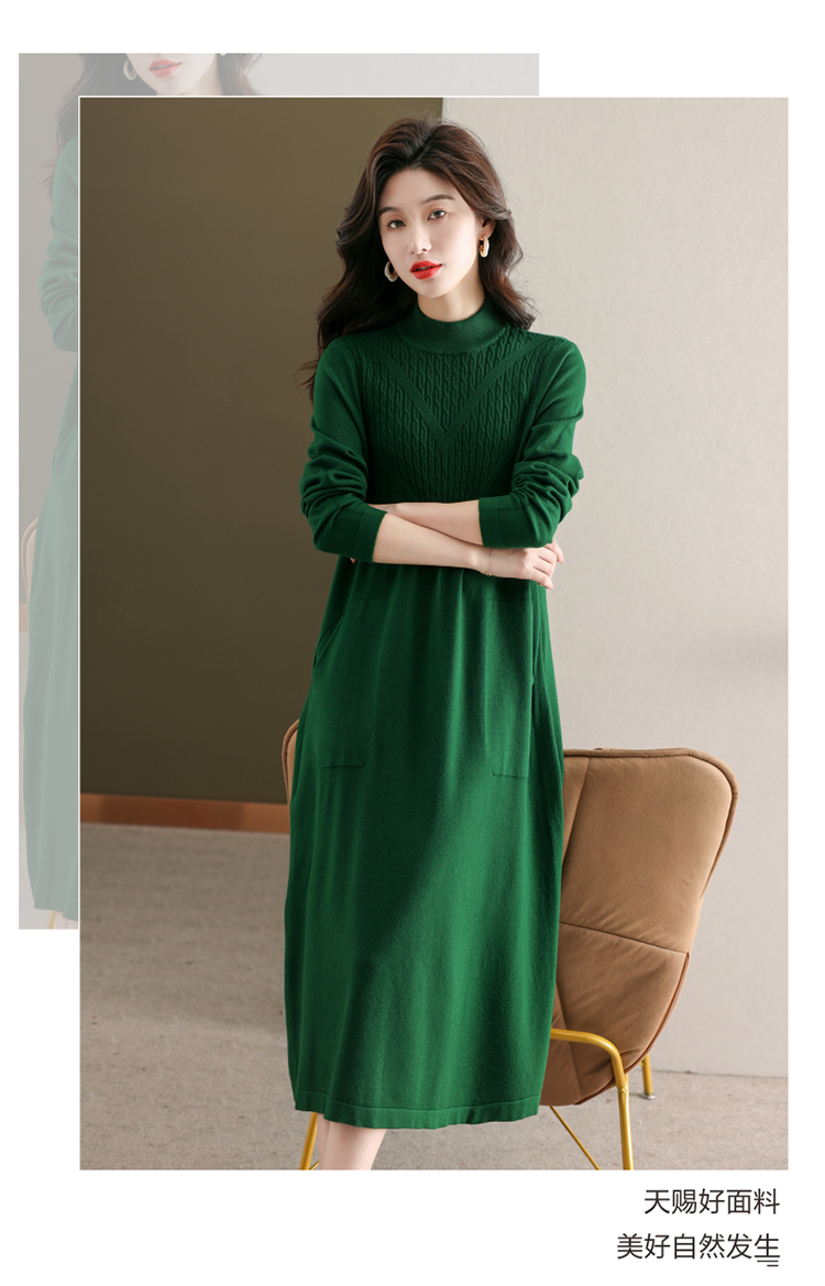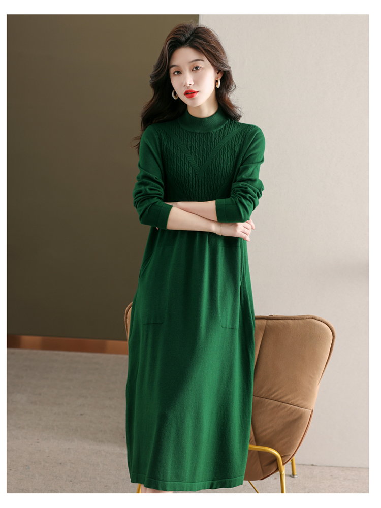 中長款半高領羊絨毛衣裙女士加厚冬季百搭打底針織羊毛連衣裙子潮