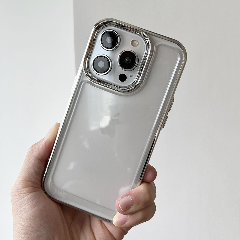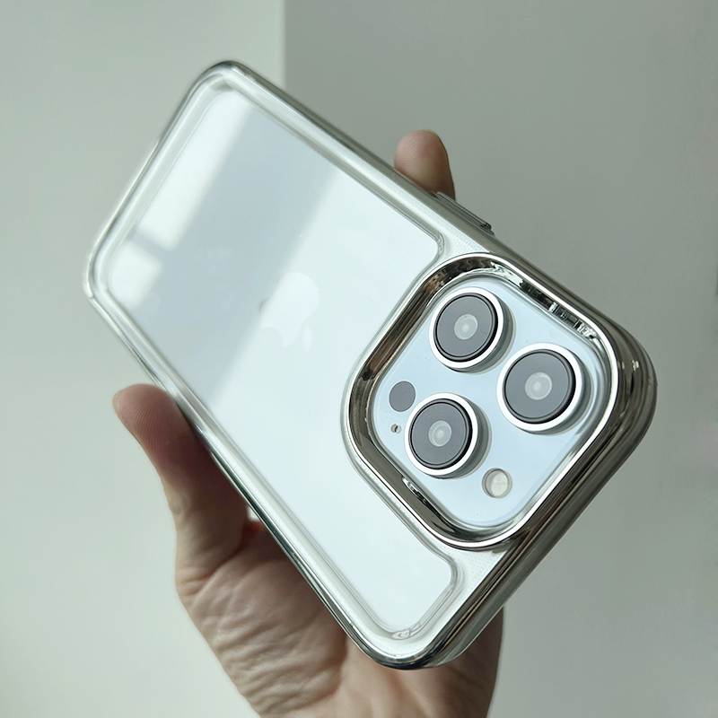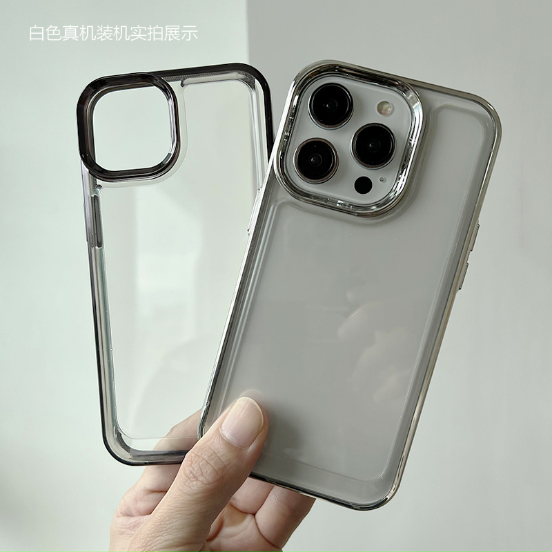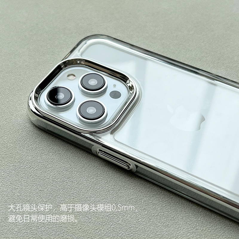 高級感電鍍銀色亞克力太空殼適用蘋果14ProMax手機殼iPhone13Pro高清透明玻璃12/13mini硅膠軟殼11新潮男女款