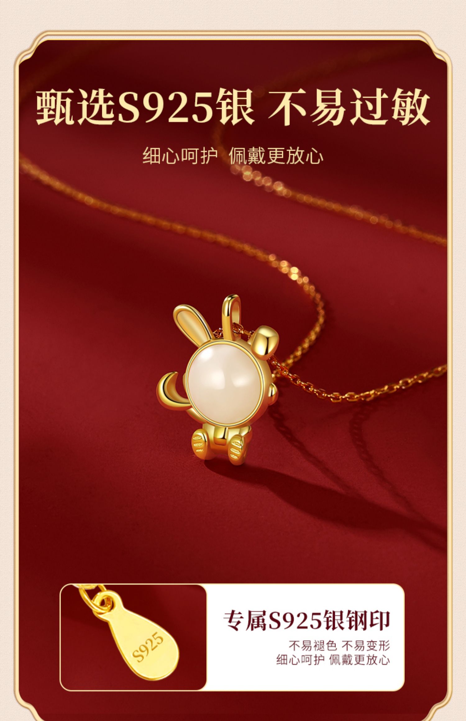 兔子項鏈女純銀本命年輕奢小眾兔年2023年屬兔吊墜生日禮物送女友