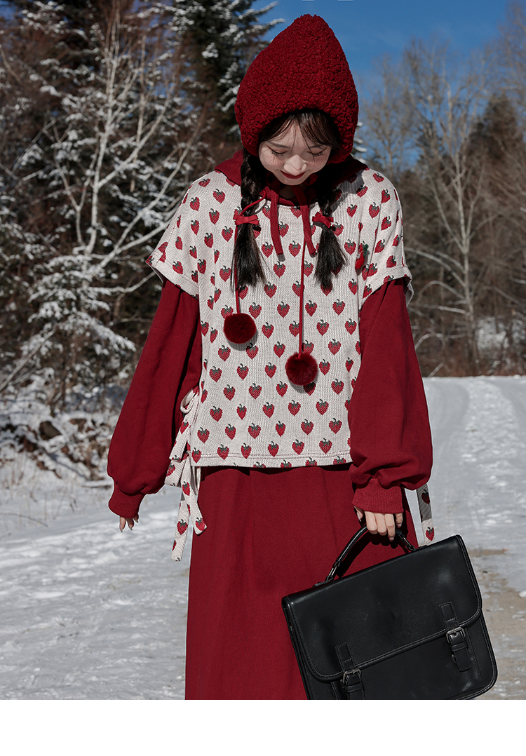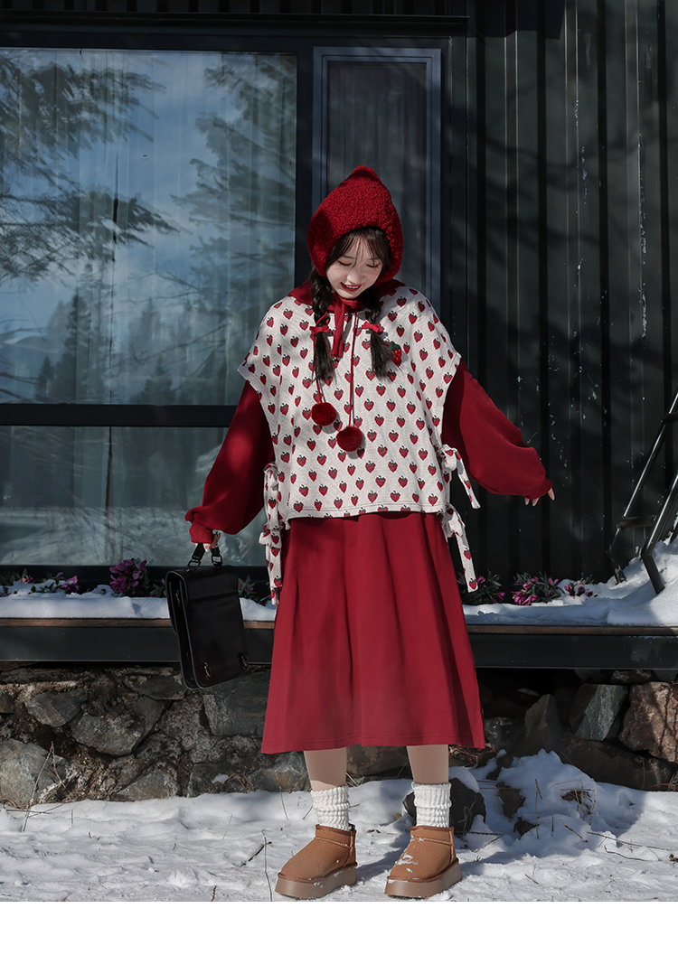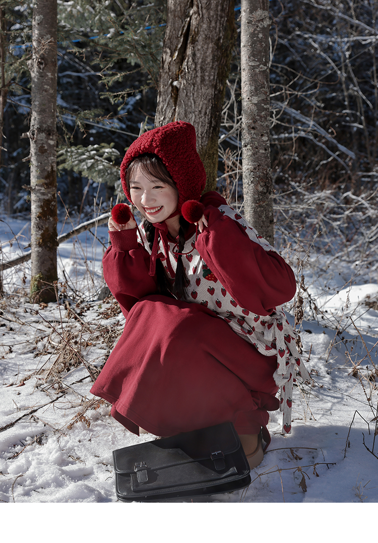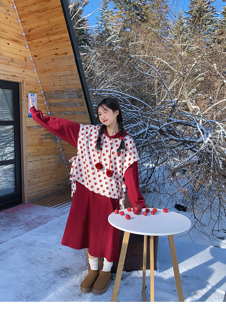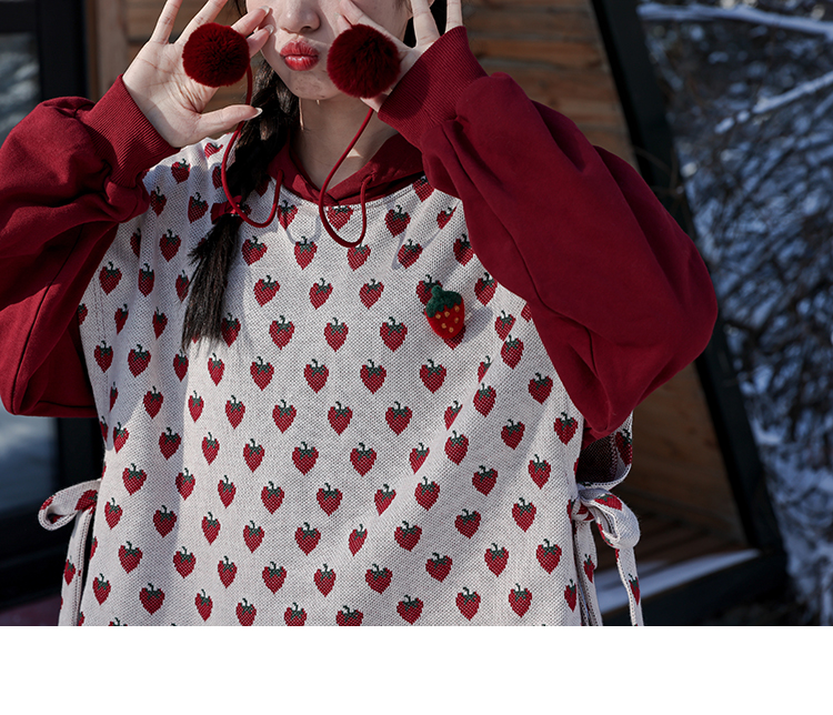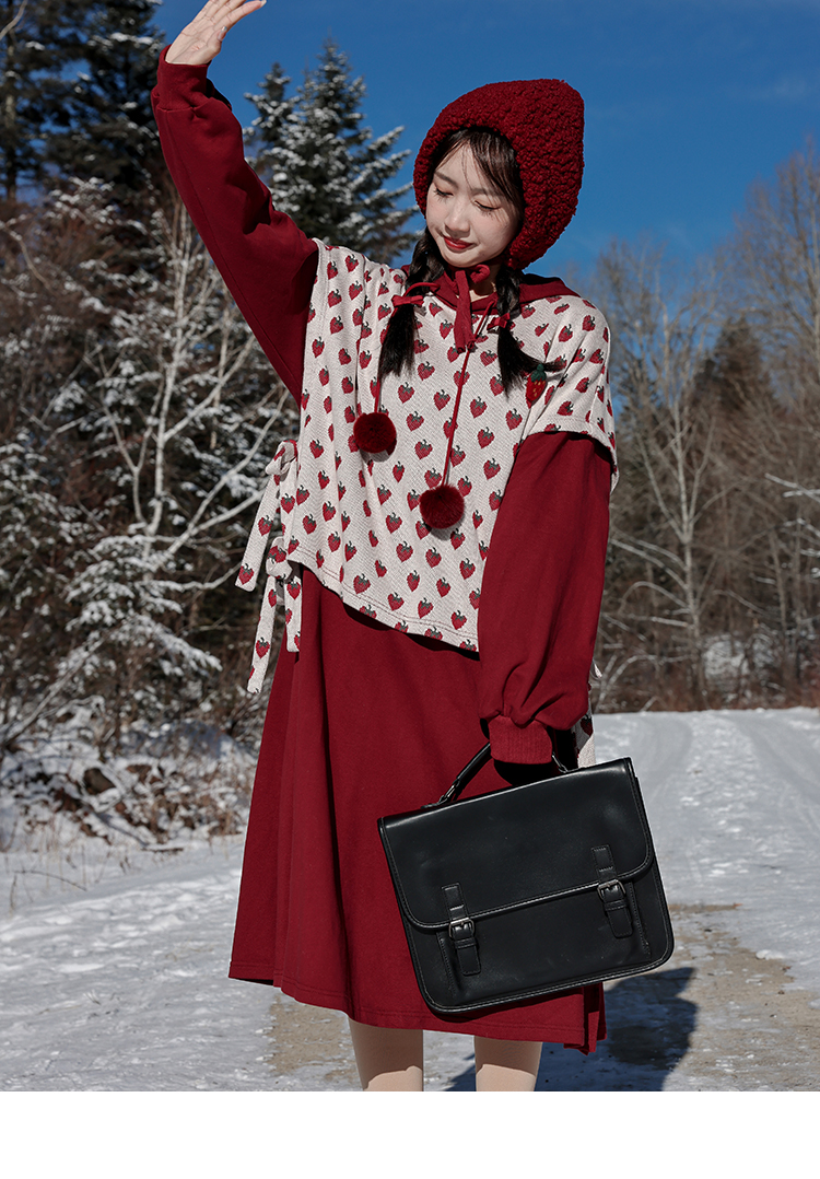 芝士日【草莓惑心】新年戰袍假兩件衛衣裙甜美連帽圣誕節連衣裙冬