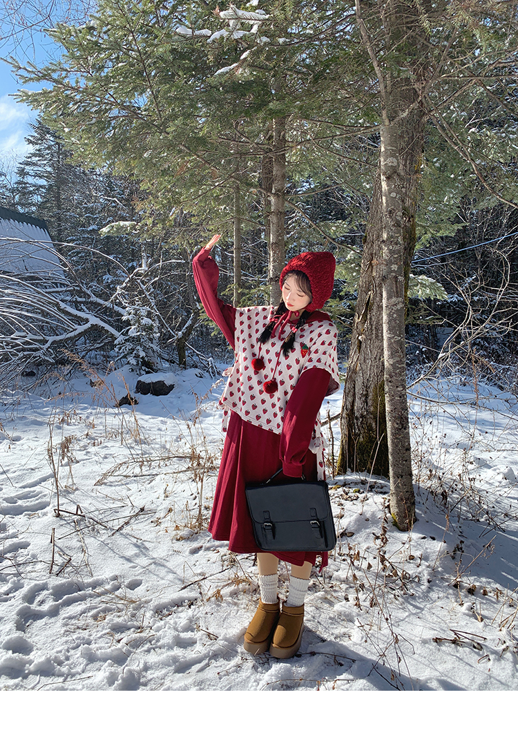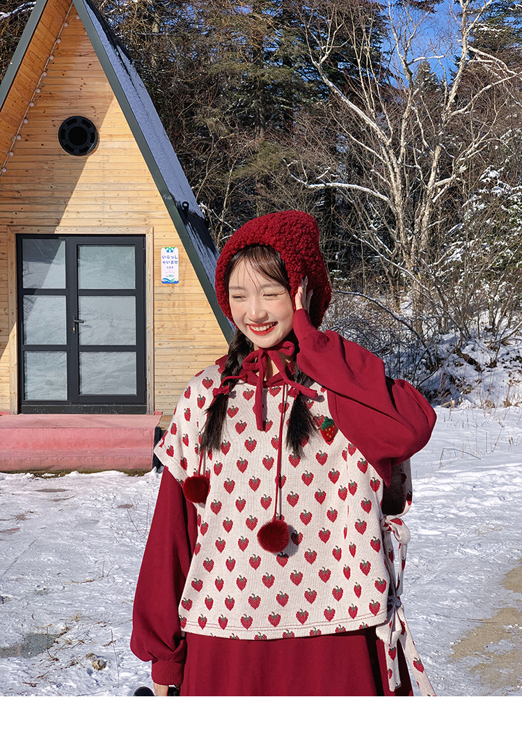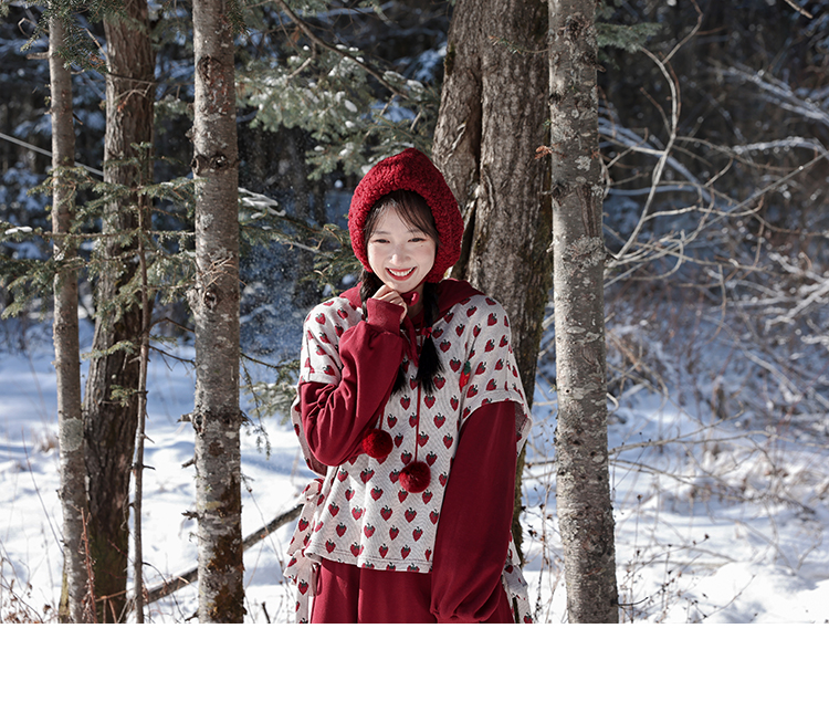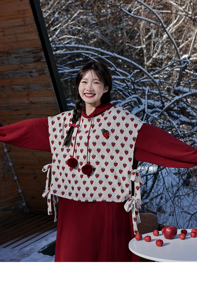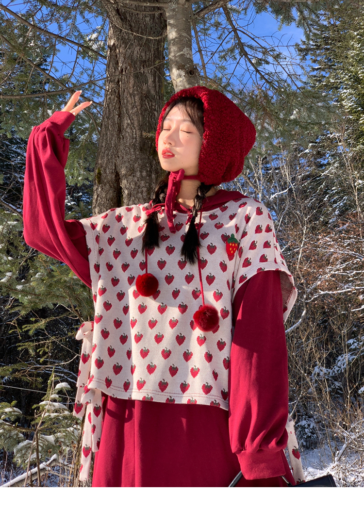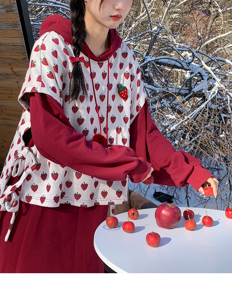 芝士日【草莓惑心】新年戰袍假兩件衛衣裙甜美連帽圣誕節連衣裙冬