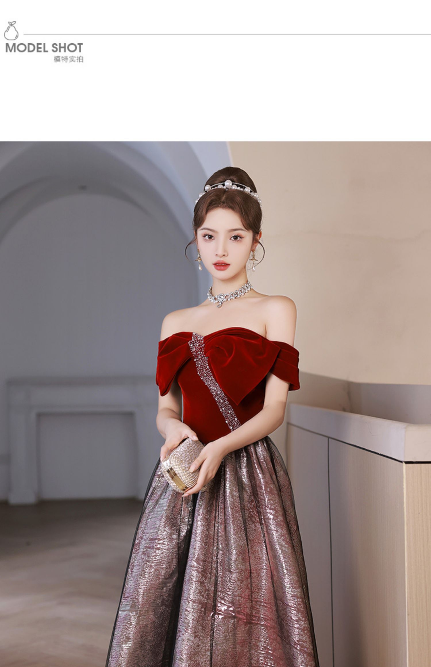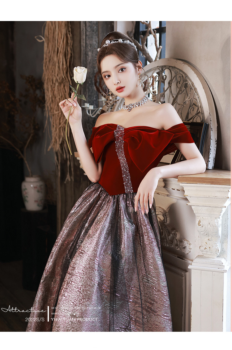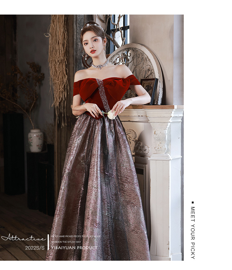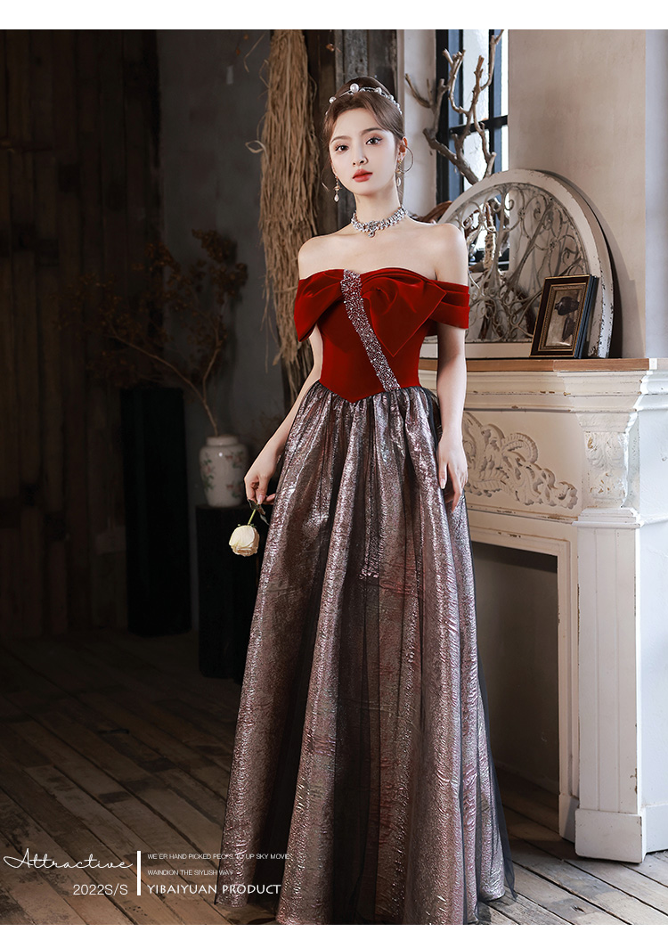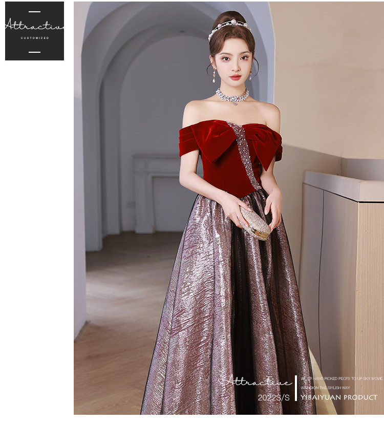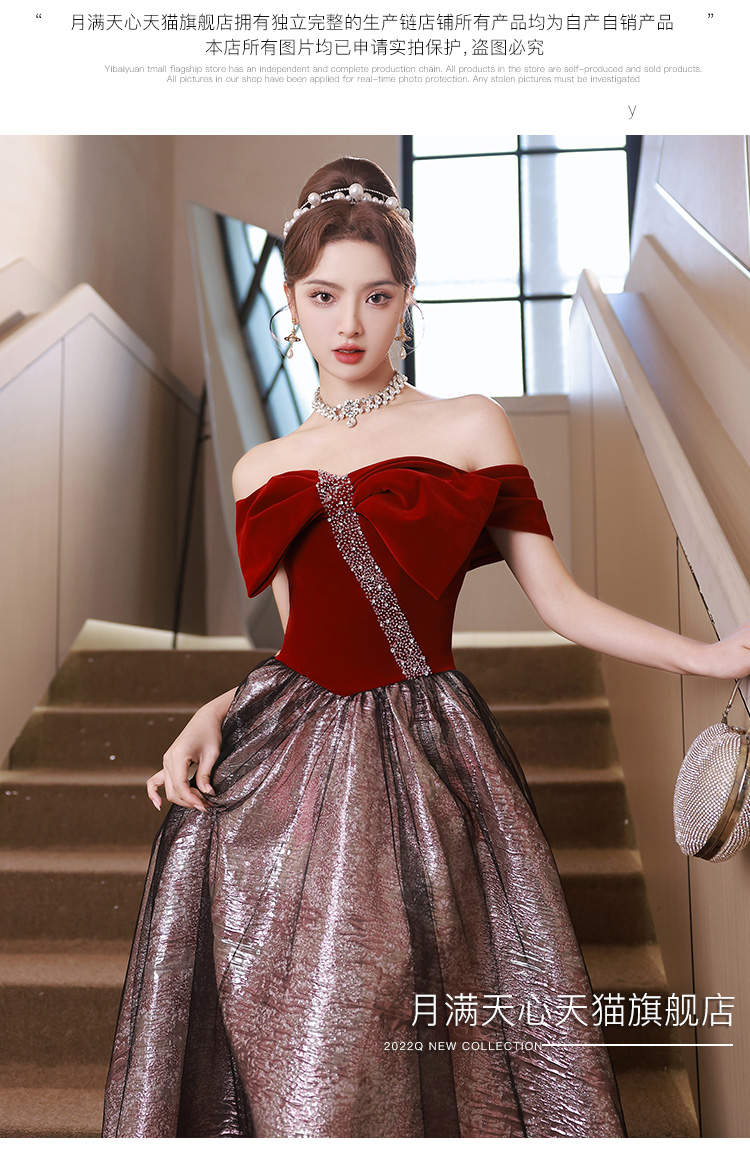 夏季酒紅色訂婚禮服連衣裙感敬酒服