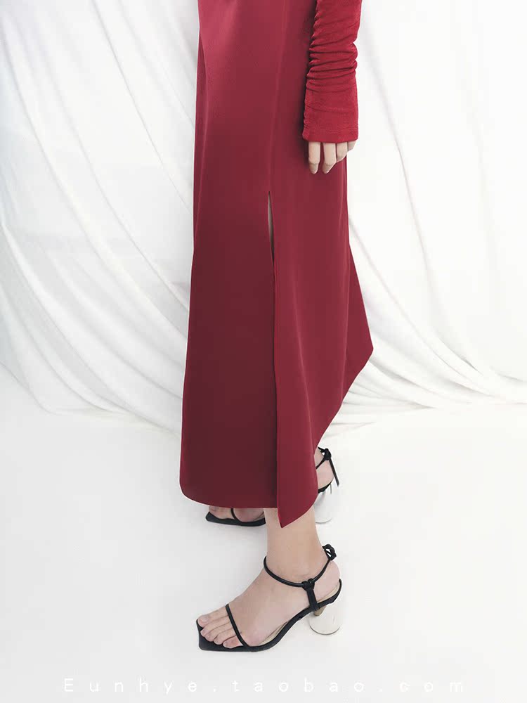 越南小眾CHARM 2023年夏季新款華麗緞面紅色一字肩長袖禮服裙