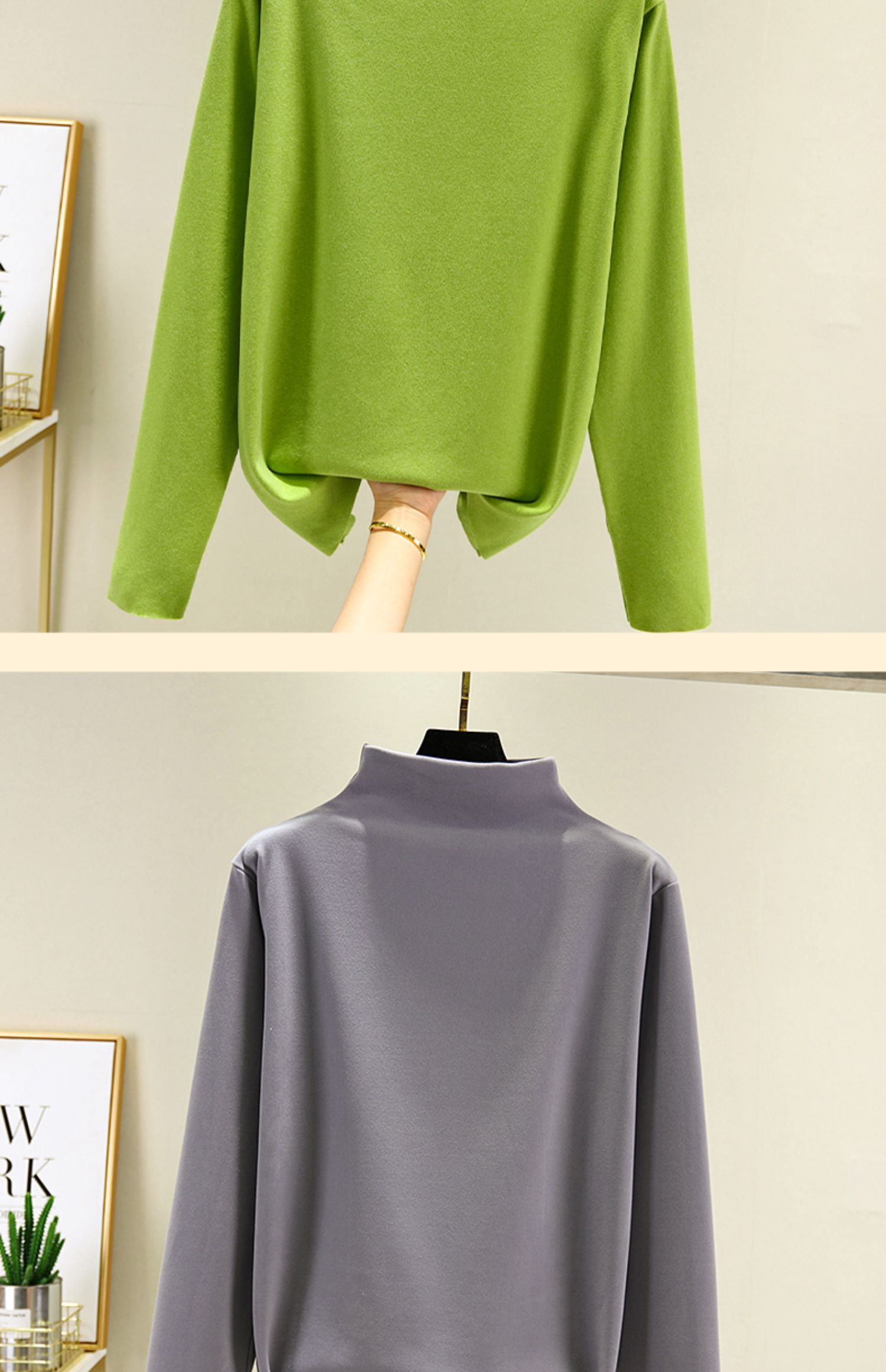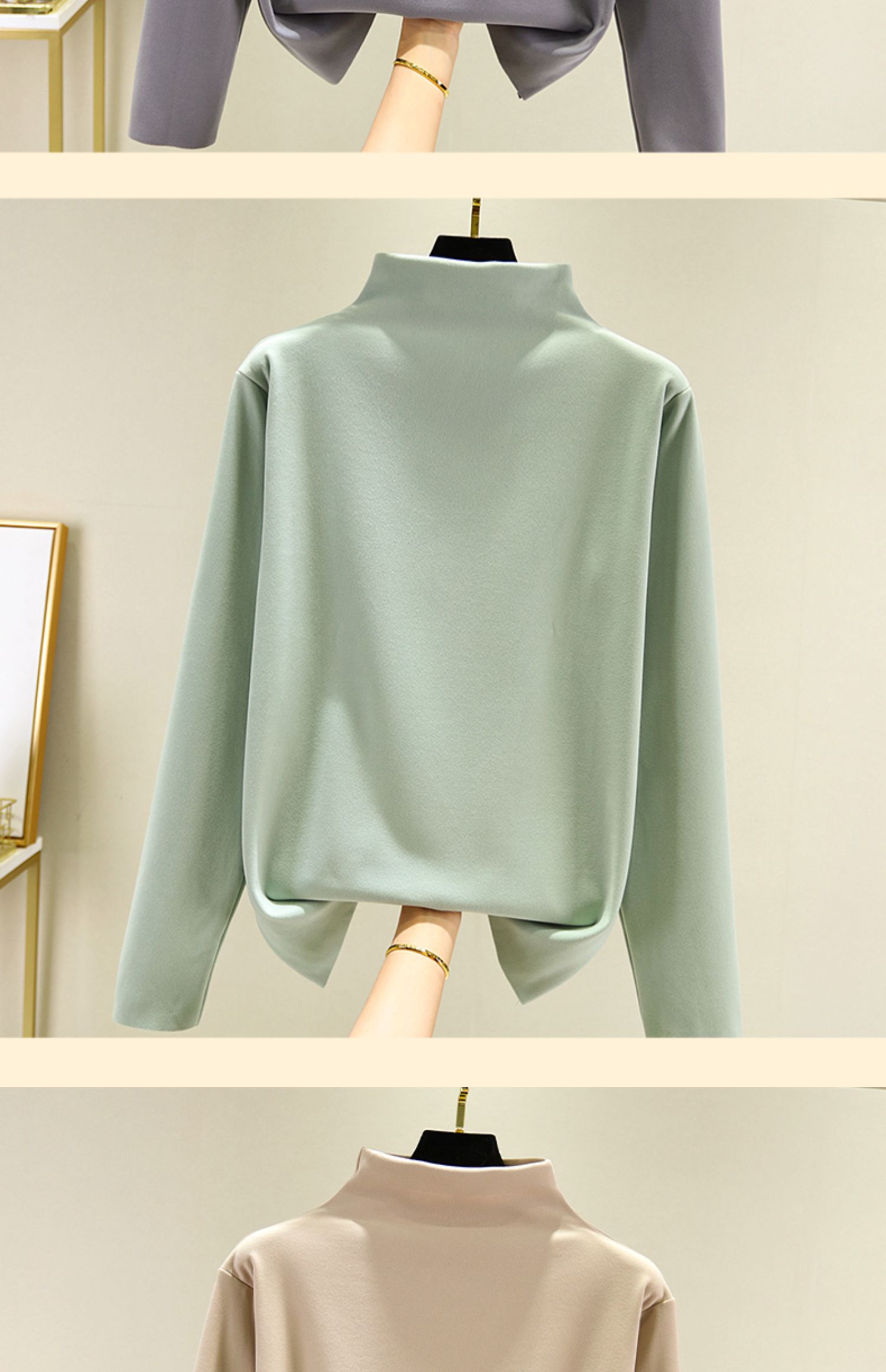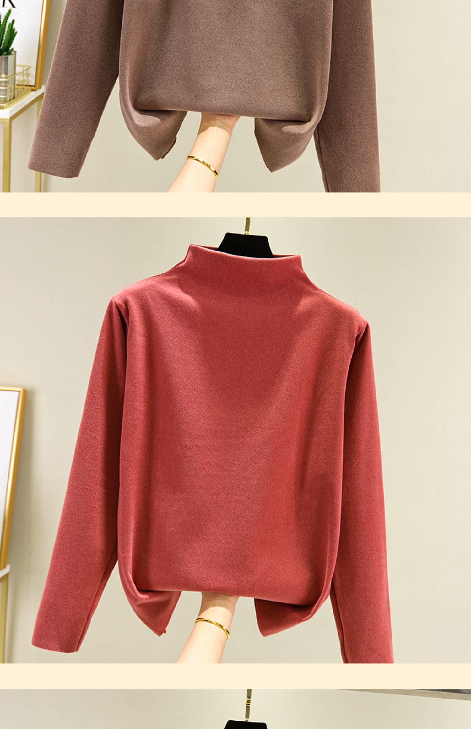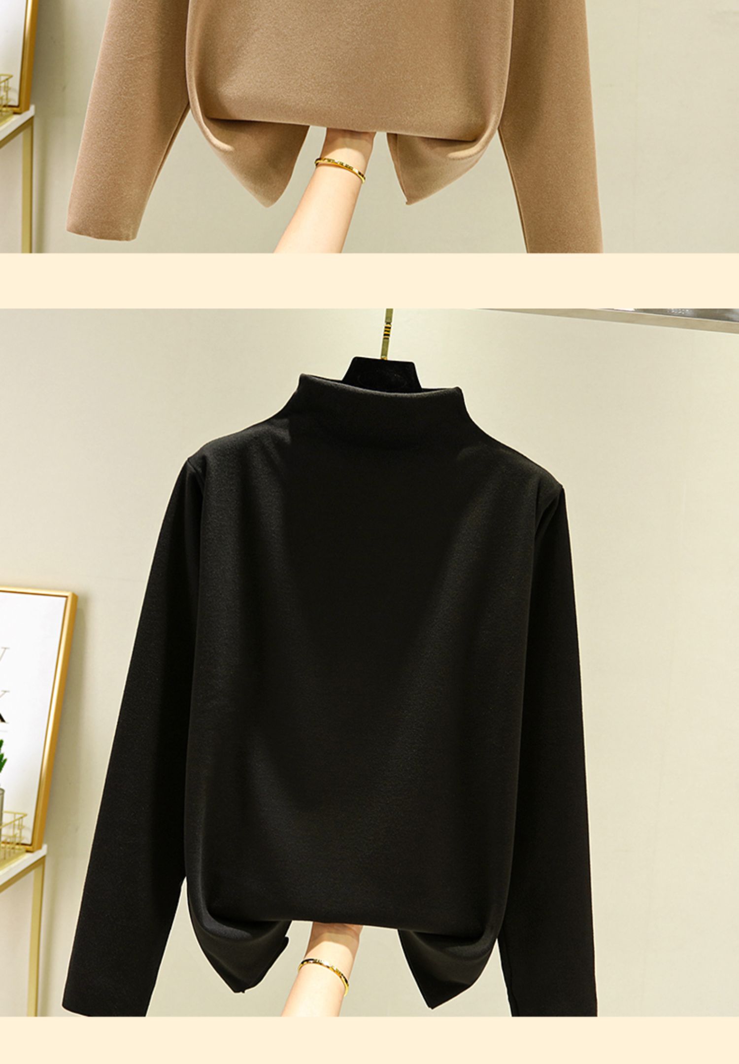 半高領德絨保暖長袖T恤女士2022秋冬新款純色簡約修身加厚打底衫