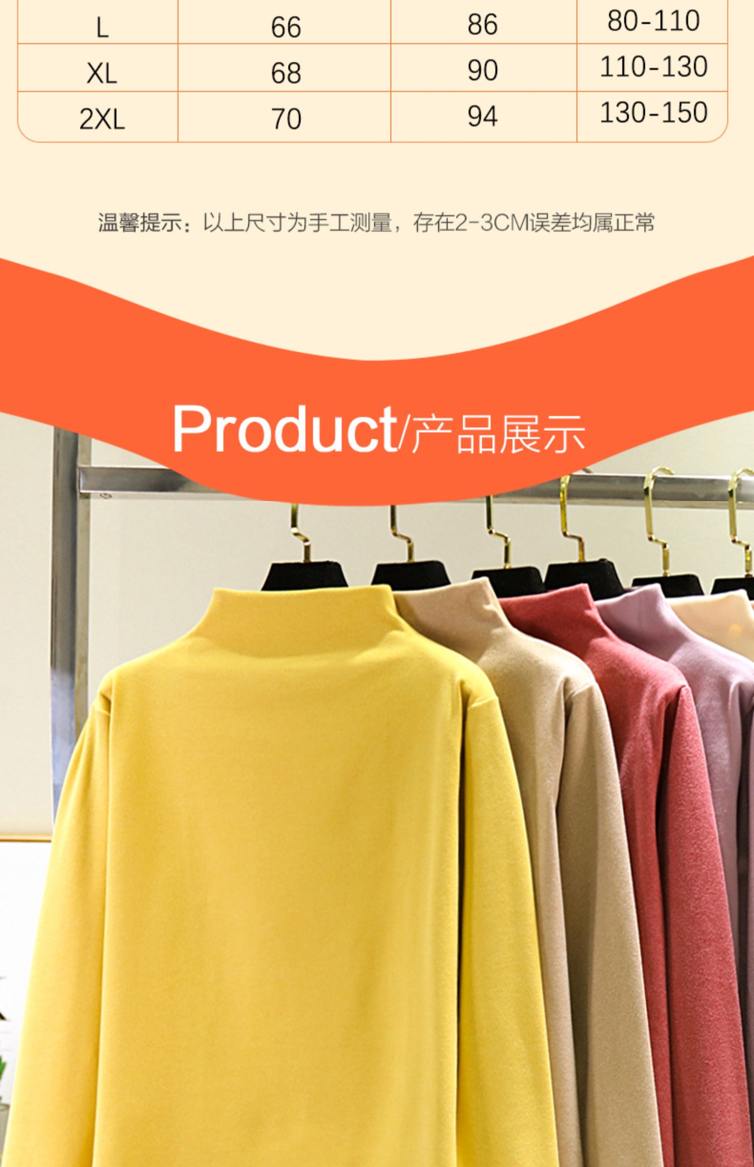 秋冬雙面德絨半高領上衣女加絨加厚打底衫保暖內搭大碼長袖T恤