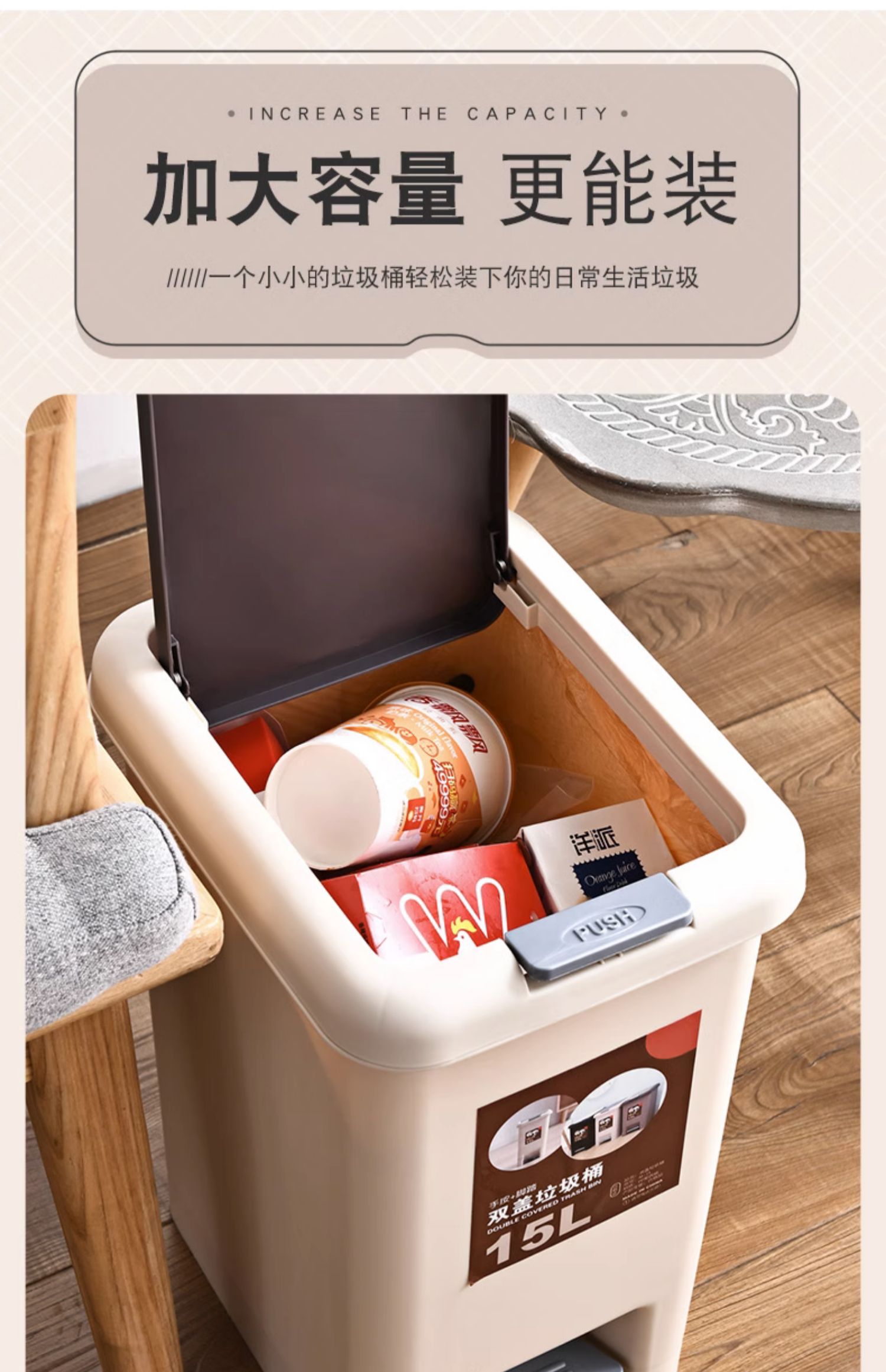 帶蓋垃圾桶家用2023新款衛生間腳踩廁所廚房大容量夾縫翻蓋腳踏式