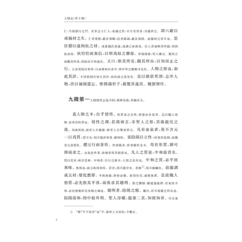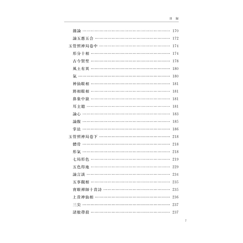 本書收錄有《人物志》、敦煌本《相書》三種、《月波洞中記》、《玉管照神局》、《太清神鑒》、《人倫大統賦》、《照膽經》、《相兒經》、《神相全編》等十一種作品。所收錄作品上起三國,下至明清,時間范圍廣、代表性強,基本可反映出中國古代相人術的發展脈絡。本書搜羅眾多版本,廣采諸家研究成果,對《人物志》等影響較大、版本較多的作品,進行了重新點校,以期為研究者和愛好者提供相對完備的文本。
