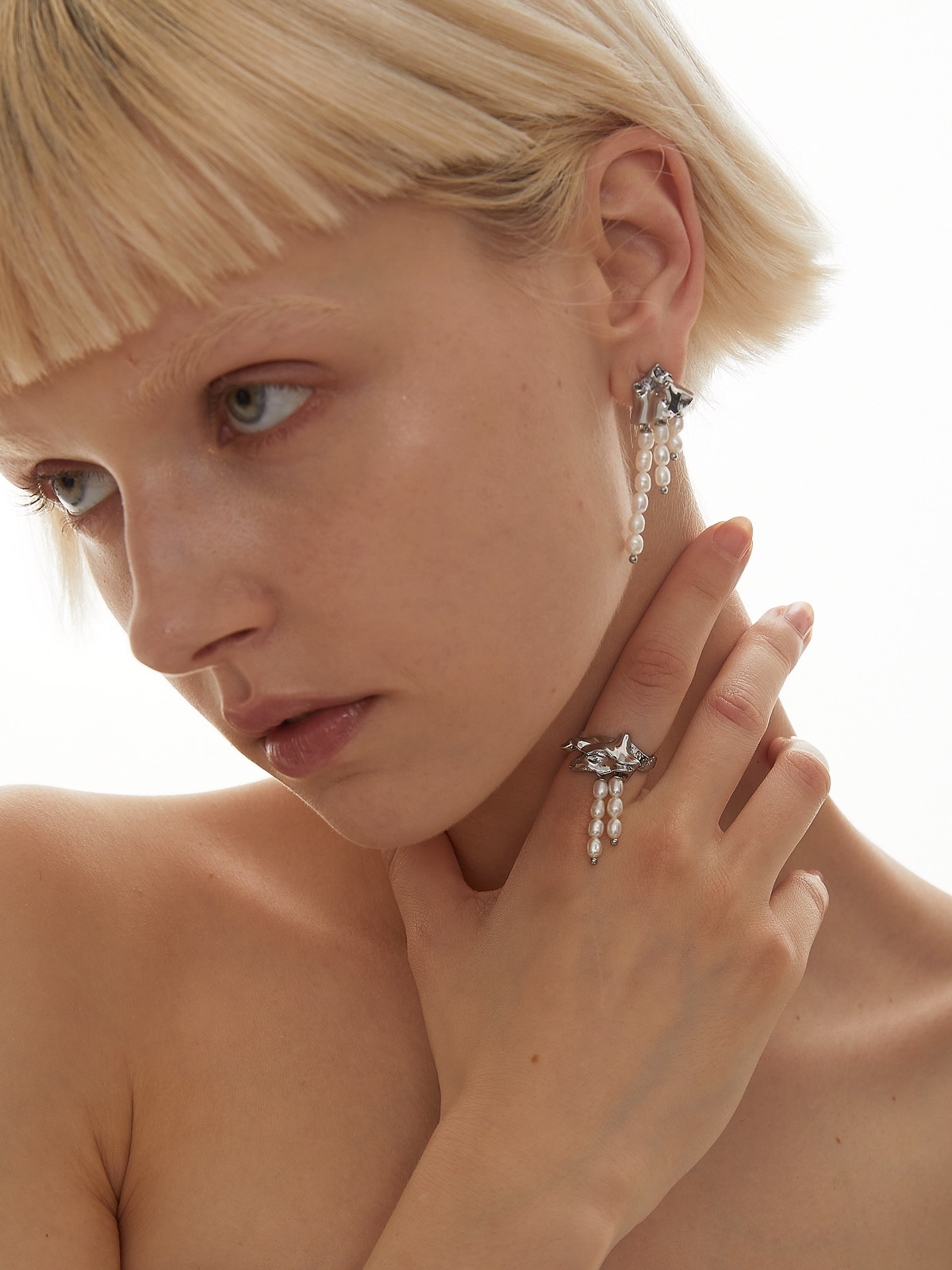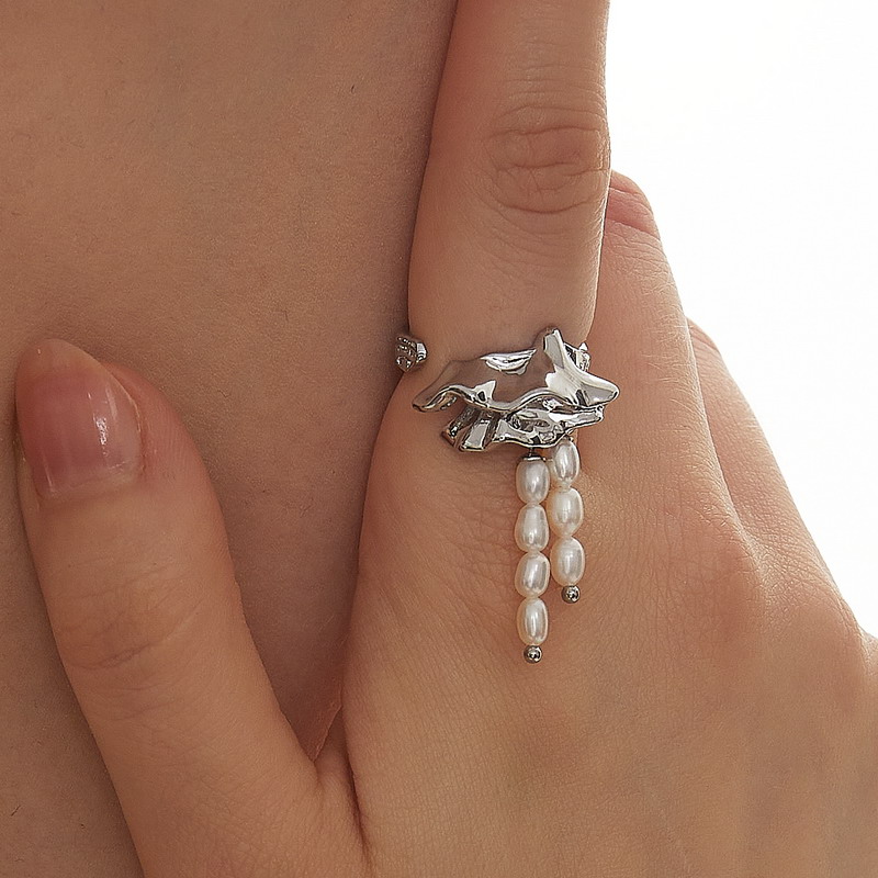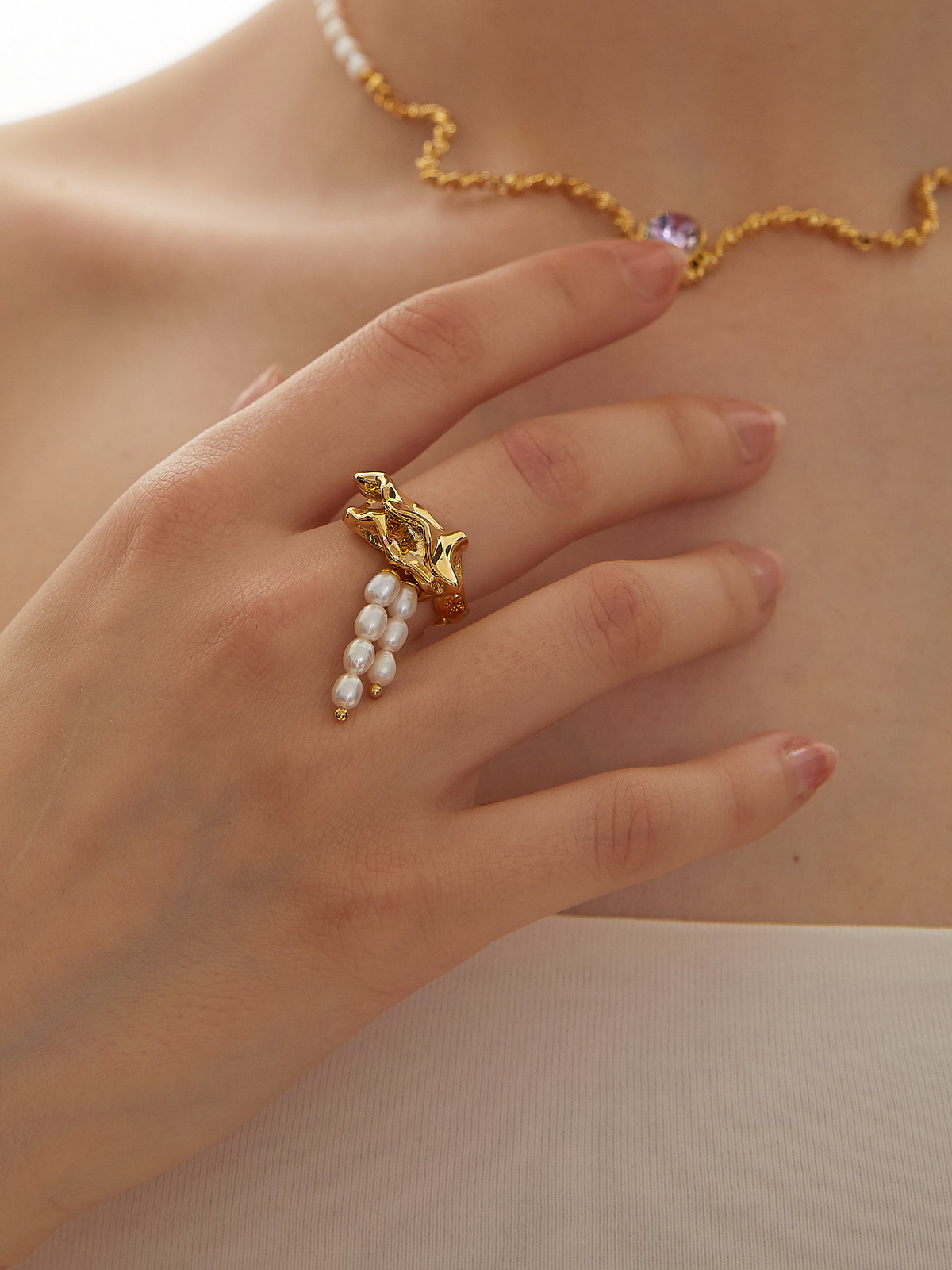 THEOGONY舞動裙擺珍珠流蘇戒指高級感戒指女ins潮開口精致簡約