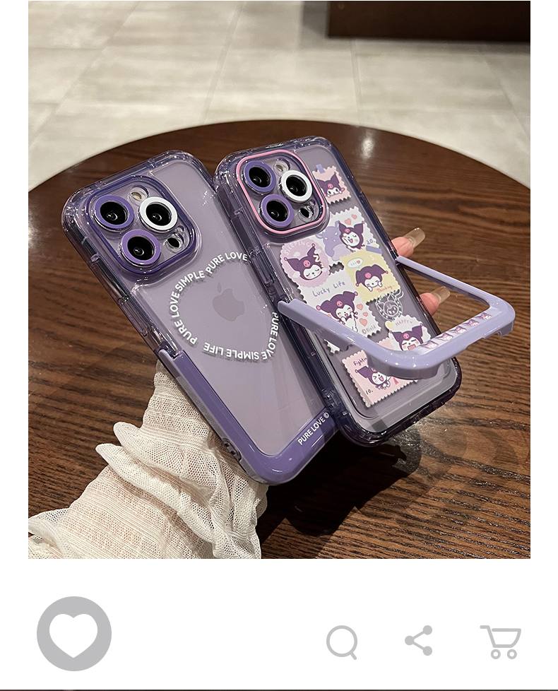 umj 透明卡通隱形折疊支架適用iphone14pro手機殼蘋果14proMax新款13加厚防摔12軟硅膠11全包創意保護套少女