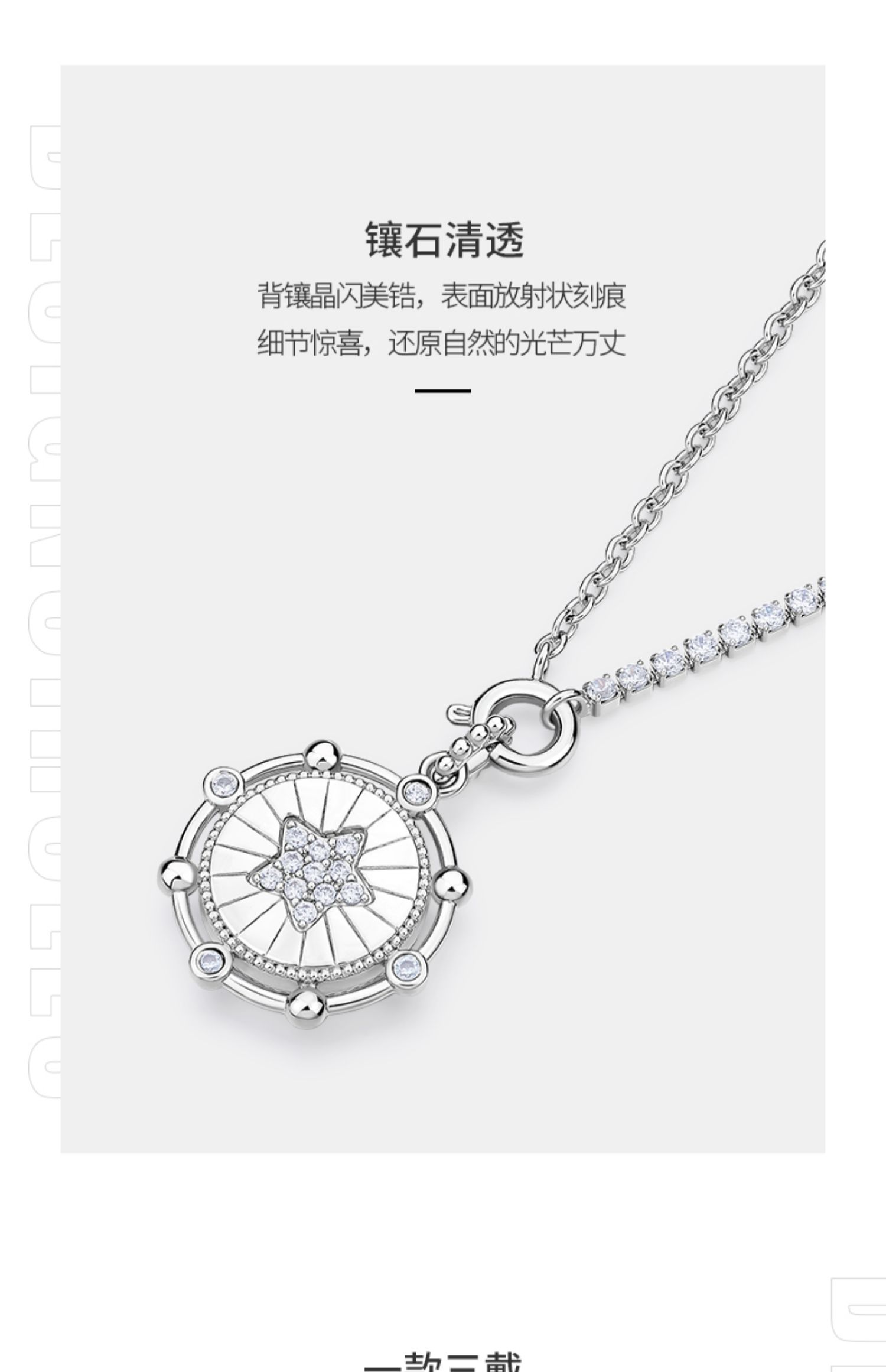 周大生星芒雪花女款輕奢純銀鎖骨鏈