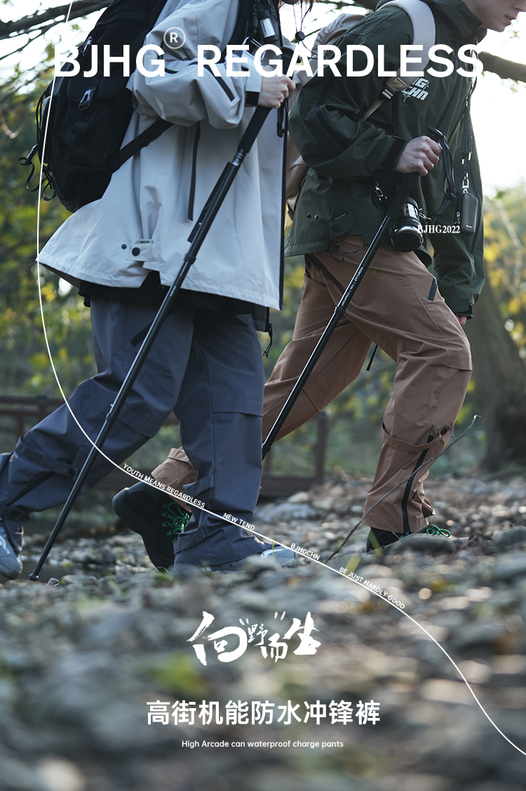 BJHG不計后果戶外登山防水沖鋒褲男秋季2023新款美式軍綠色工裝褲